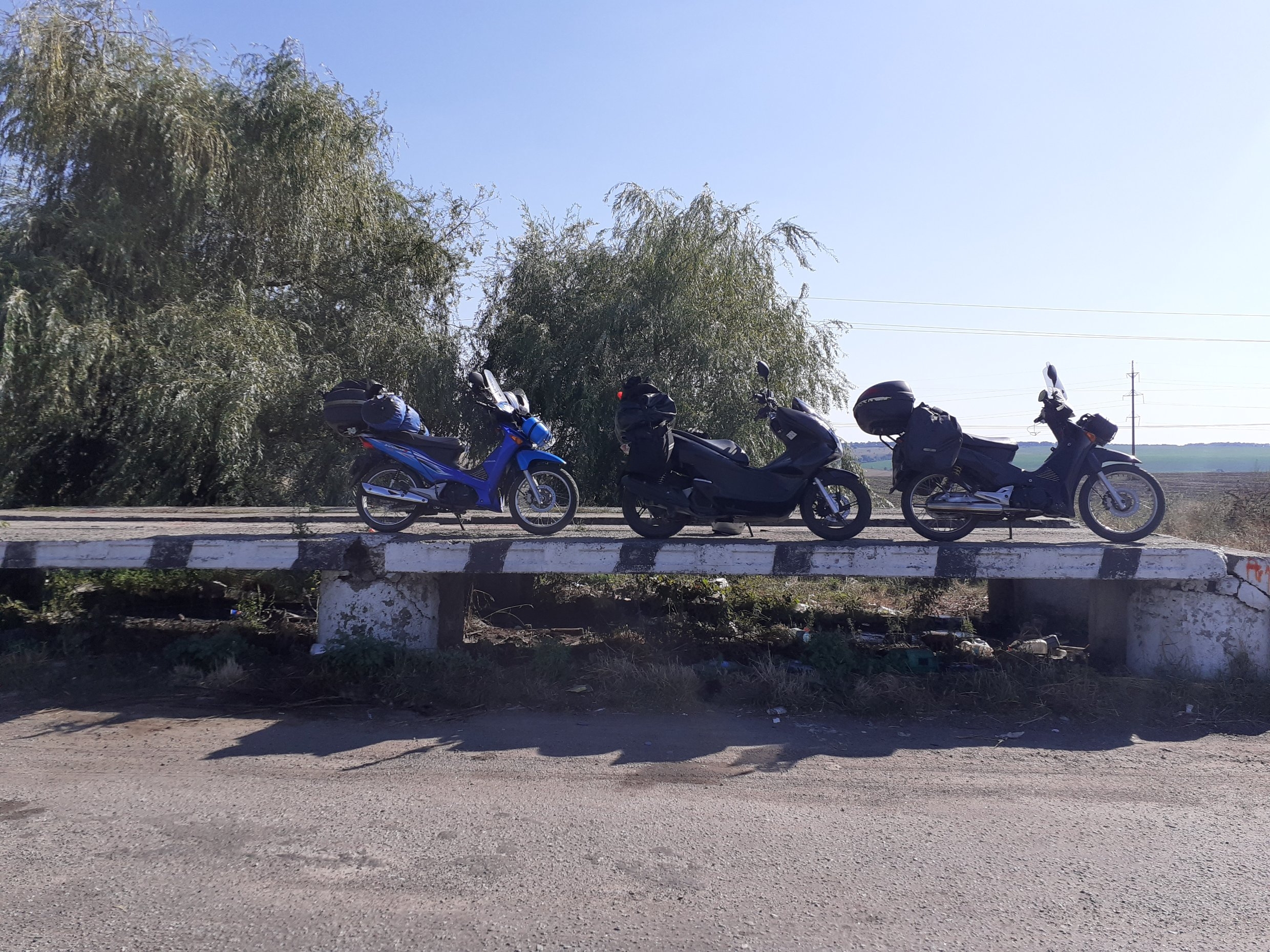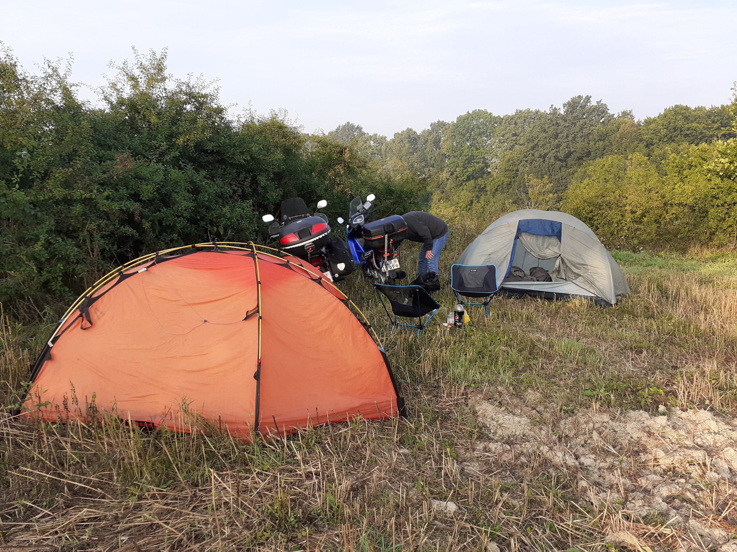Das gute Wetter haben wir schamlos ausgenutzt und sehr häufig einfach wild gecampt; manchmal mit, manchmal ohne Zelt. Besonders in der Ukraine lag von den frisch abgeernteten Weizenfeldern noch sehr viel frisches Stroh auf den Feldern. Da schläft man besser als in jedem ausgelutschten Hotelbett.