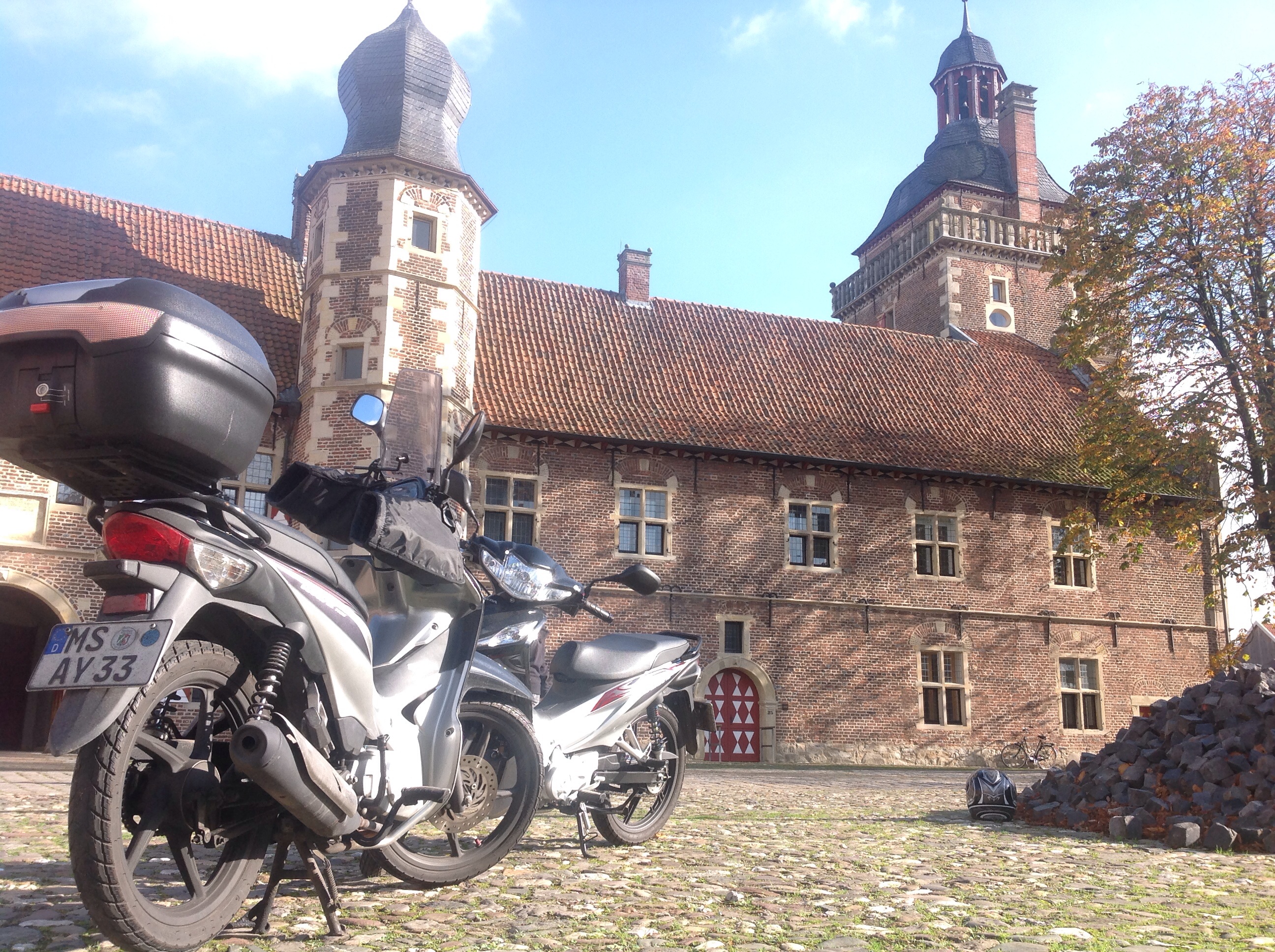 Spontan ging's abseits der normalen Straßen über Strecken auf welche die roten fahrradschilder aufmerksam machen. Teils unbefestigt, Schnodder, Laub sand...man macht ein heidenspass!