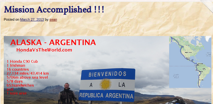 Sean hat die Alaska-Feuerland Tour schon im März 2013 beendet.