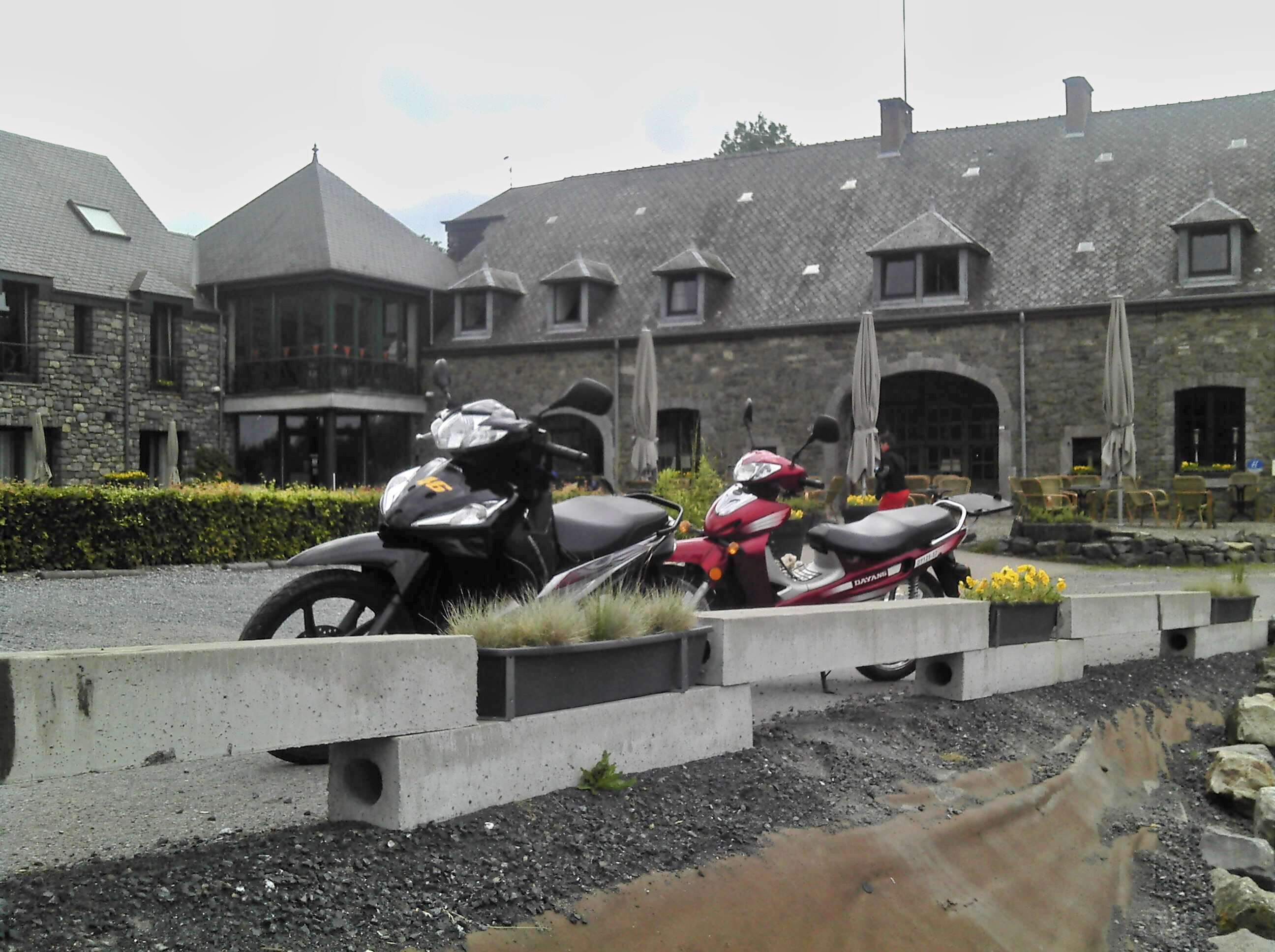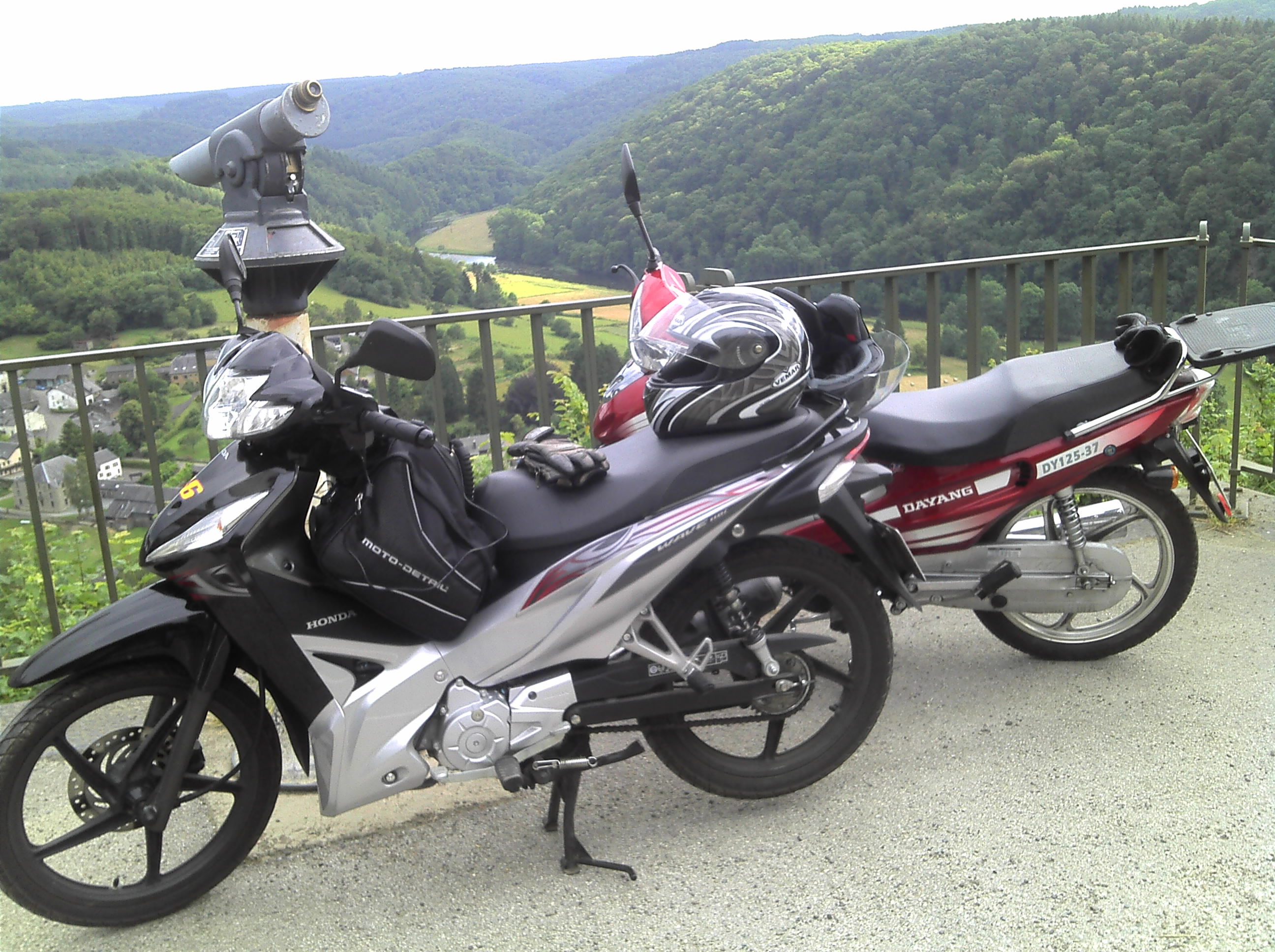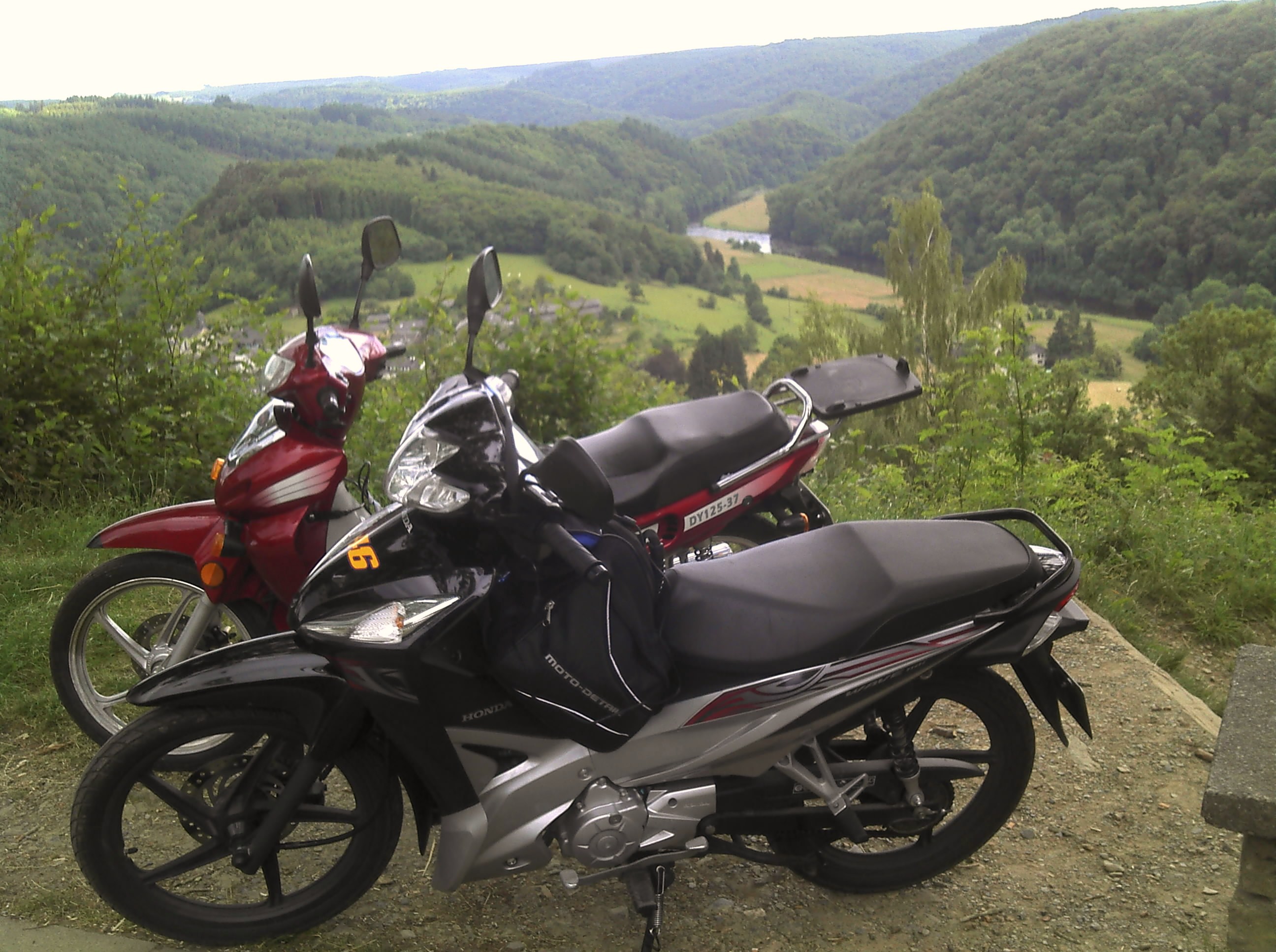 Wir sind heute um 8 Uhr in Bochum gestartet, bestes Moppedwetter, Station am höchsten Punkt der NL(Vaalserberg,324 m.ü nn )gemacht, dann gemütlich bis zum Etappenziel in den Ardennen ( Gedinne),320 Km,9Std. mit Pausen.