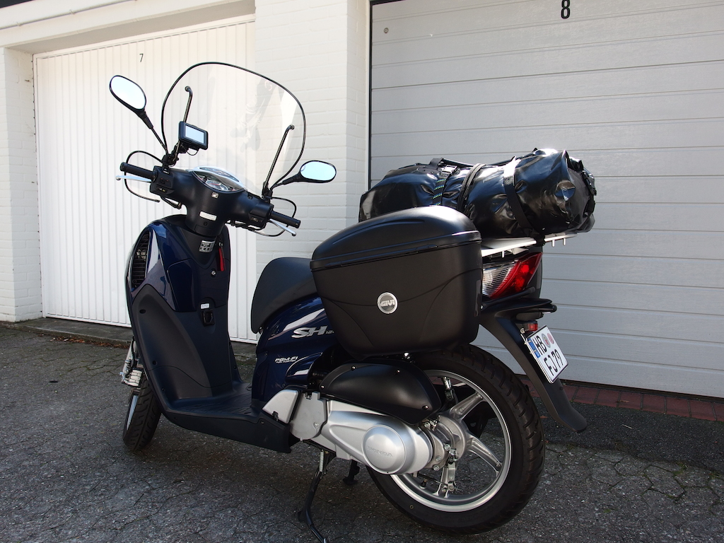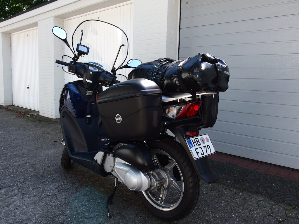 Seltsamerweise grüssten mich auf der Landstraße drei Motorradfahrer, ein Roller mit Seitenkoffern passt wohl
