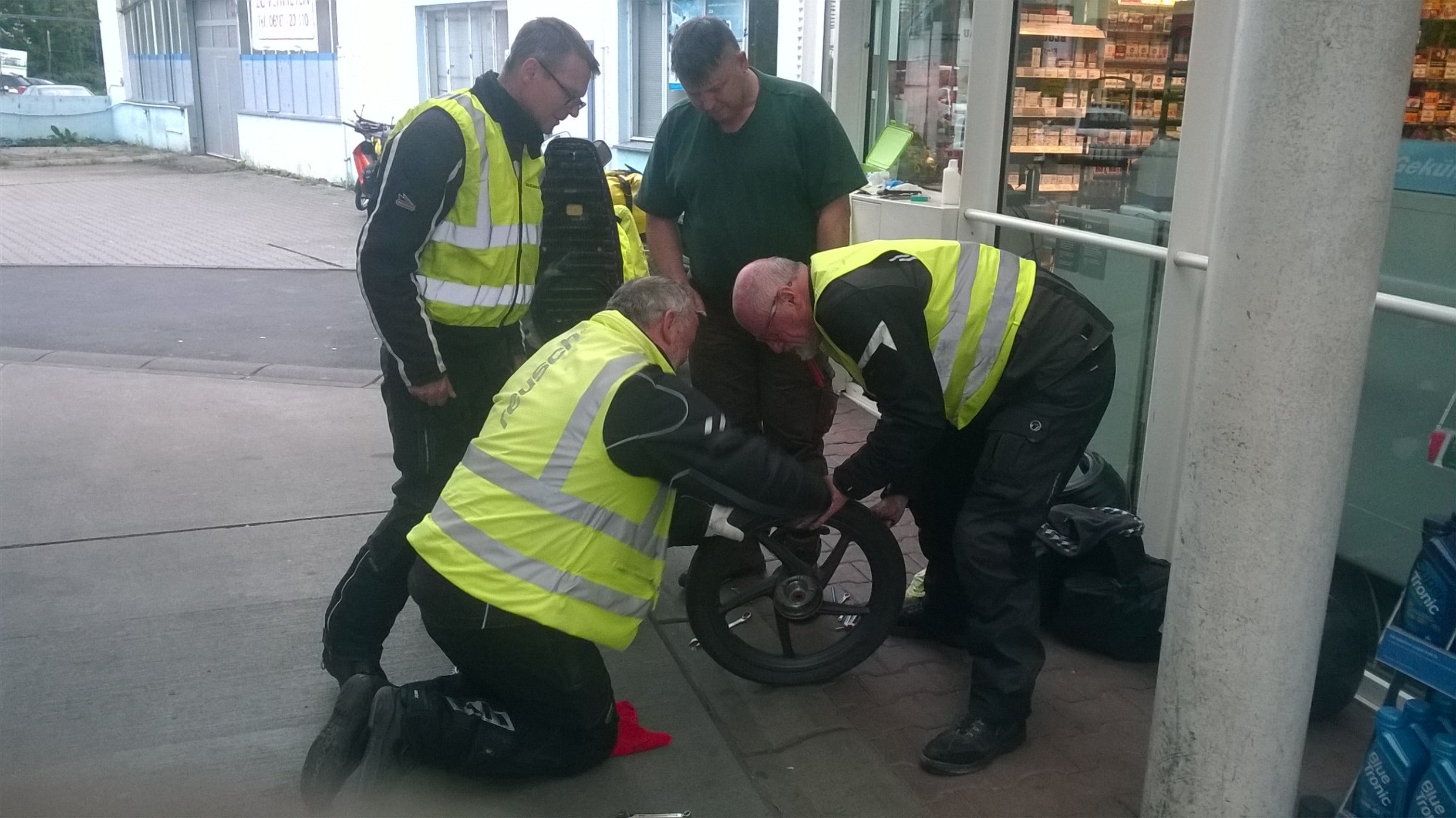 Die haben hier noch nicht mitbekommen, dass ich inzwischen das Moped besitze, aber Ralf ist im Geiste immer dabei: