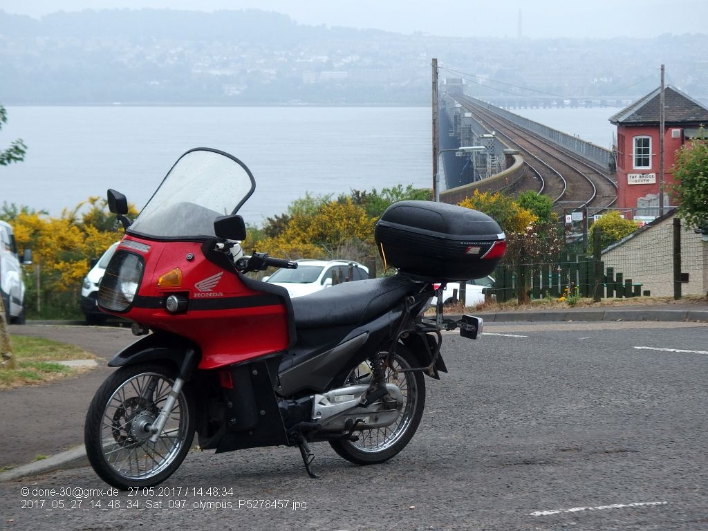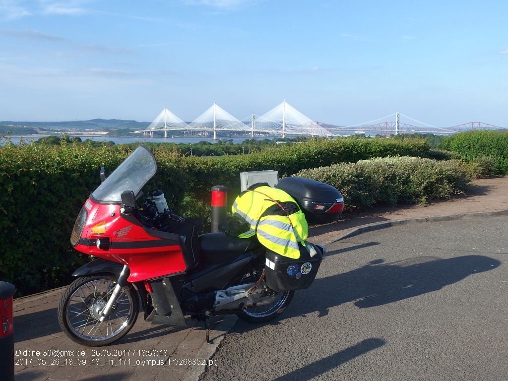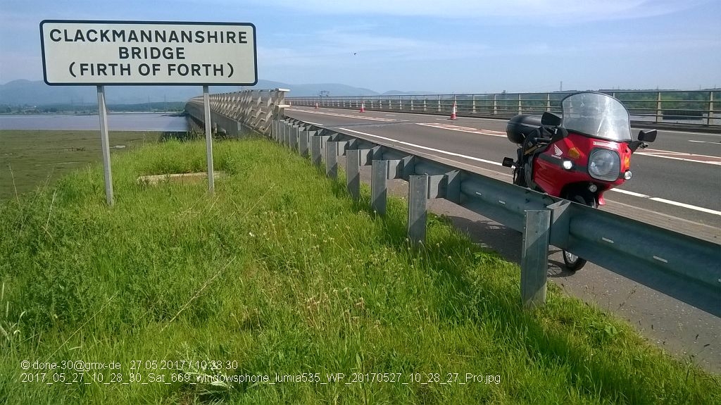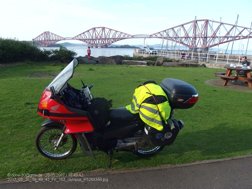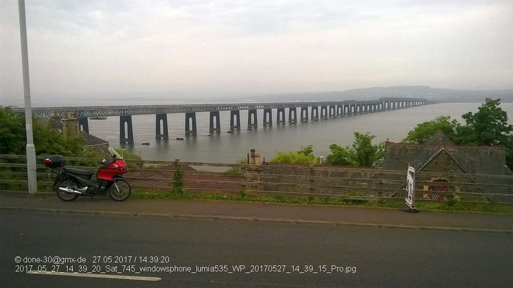 Also gings erstmal nördlich des Firth of Forth zur Ostküste rüber und hoch durch Burntisland (alberne Namen müssen überprüft werden) , Crail, St Andrews vorbei bis zum Firth of Tay. Dort natürlich auch die Brücke besichtigt. Wieso ist da immer von einer Fontane die Rede? Egal, hab keinen Springbrunnen gefunden.