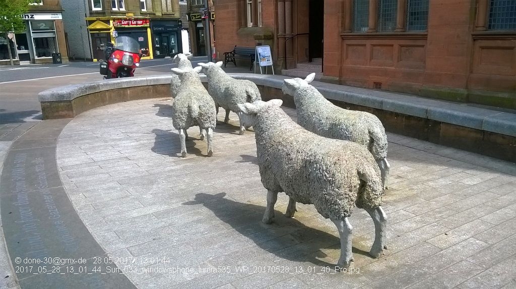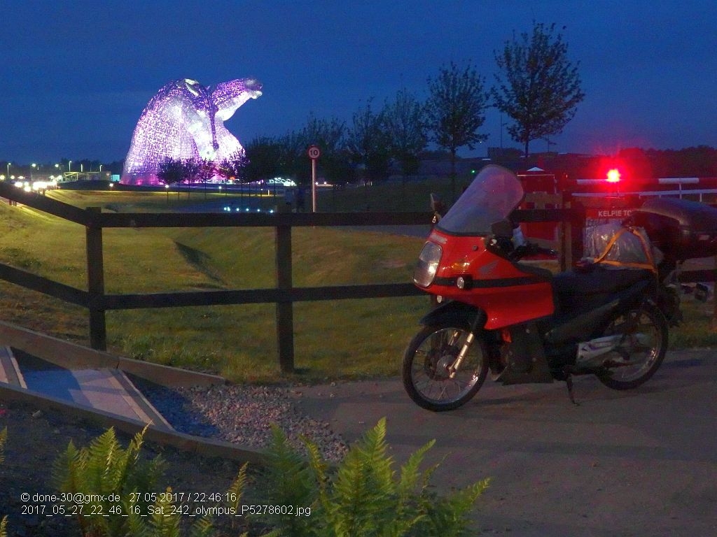 Dann wars auch schon dunkel und ich flog tief an Stirling vorbei, schaute noch zu den Kelpies. An der Unterkunft wollte man mich abwimmeln als ich an der Schlange an der Reception durchdrückte. "we'e complete" Aber der Irrtum war gleich behoben und erstmal gevespert.. Semmel können sie nicht auf der Insel, egal wer