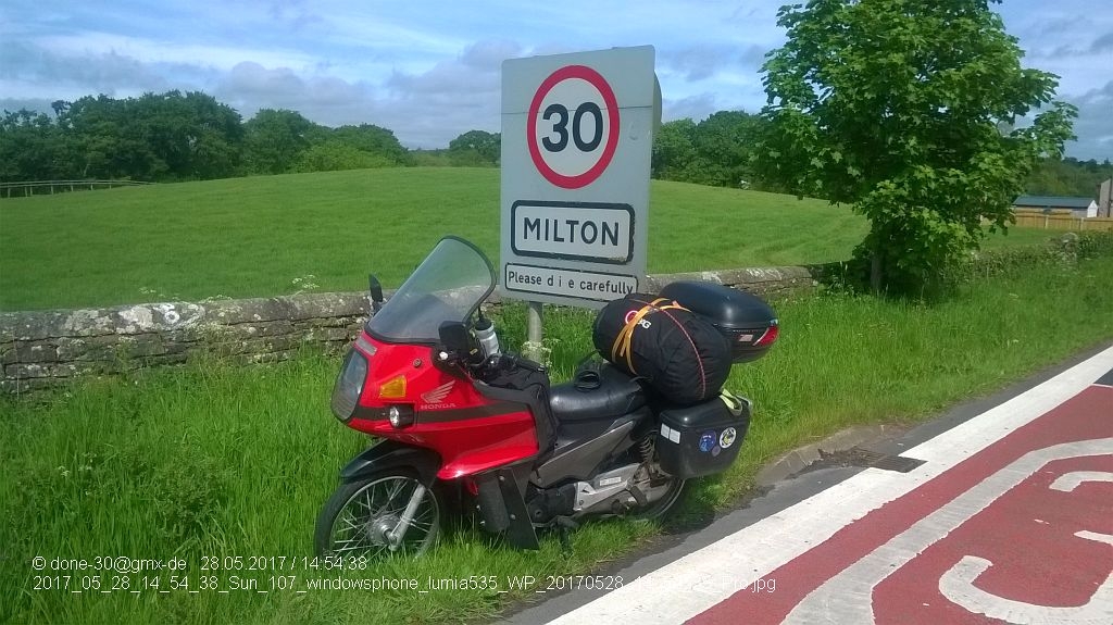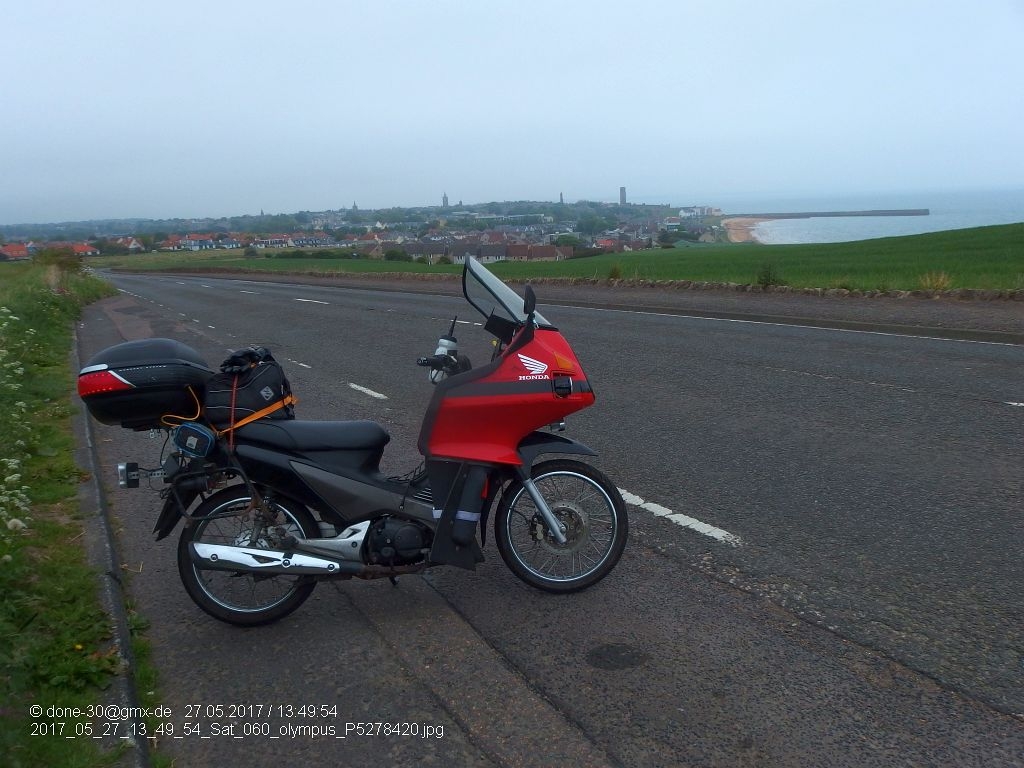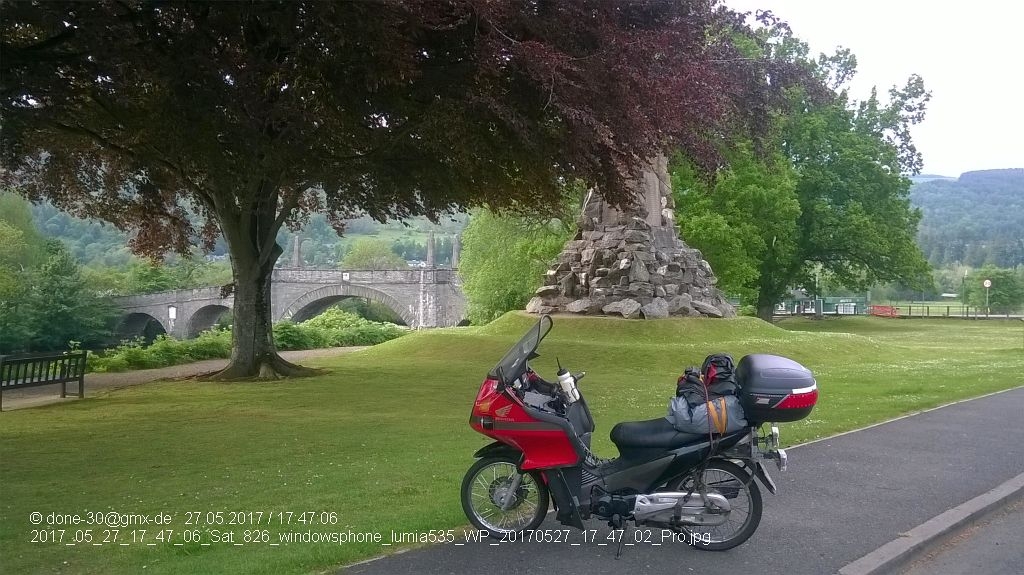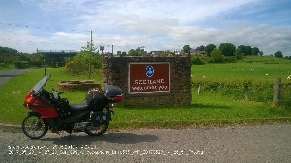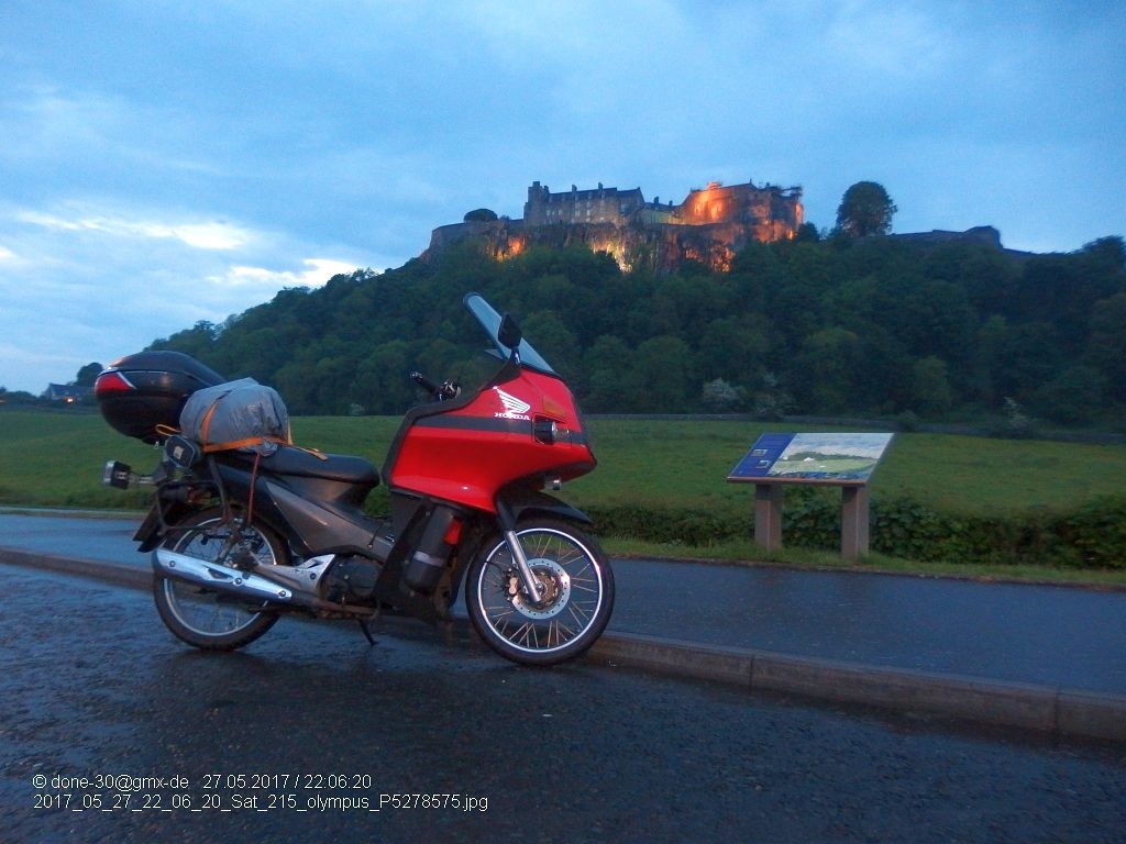 Schwung vom Vatertagsausflug mitgenommen und mit der Kraft der 125 Kubik bis ans Ende der Welt gekommen und ein bischen weiter. Eigentlich viel zu heiß zum Mopedfahren. Für morgen Nachmittag sind hier um Falkirk Unwetter angesagt. Bin mal gespannt was ich machen kann. Die Unterkunft ist etwas strange, aber ein zweiter Tag wäre möglich