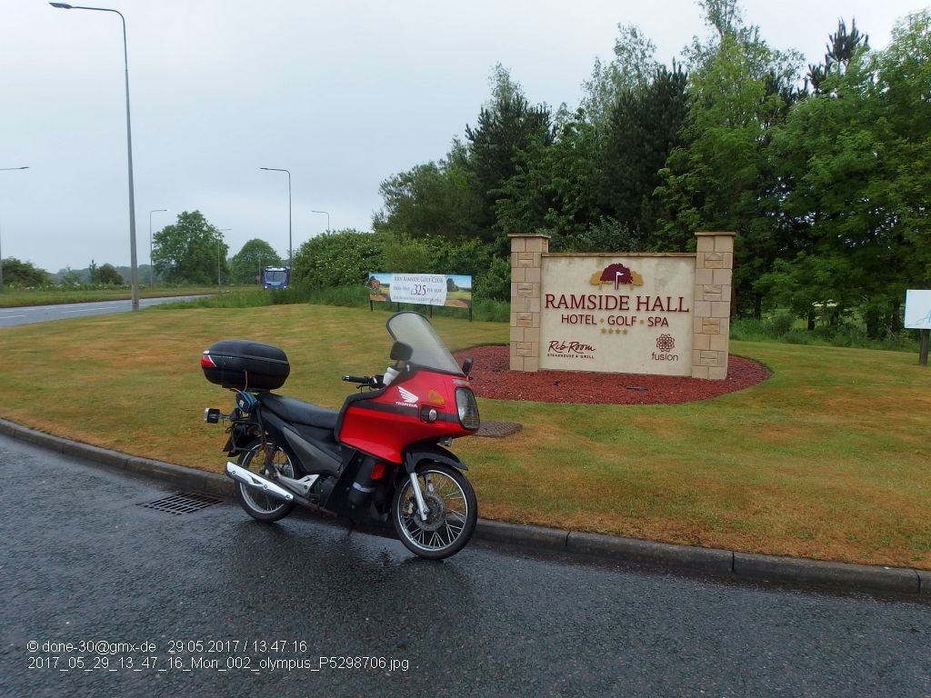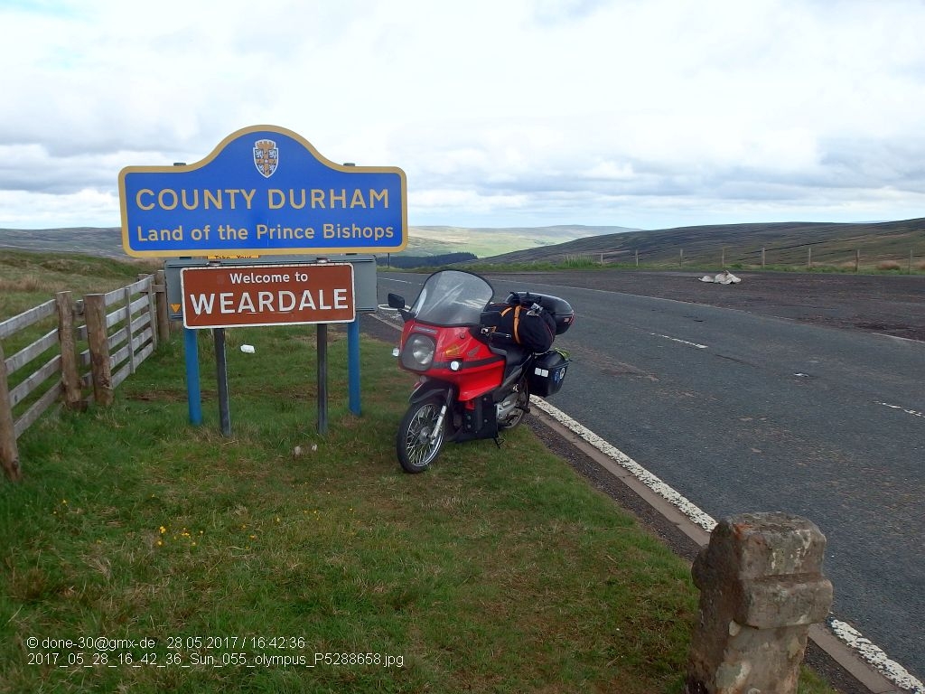 Ganz kurz nur ein Bild posten. Ist spät geworden, hab noch kurz in Durham den Junior getroffen der, sich noch auf zwei knackige Prüfungen vorbereitet. Und ich sitze wieder in einem Loch. Teppichboden so hochflorig, dass man auf seinen Helm aufpassen muss, aber trotzdem ein Loch. you get what you pay stimmt nicht immer.