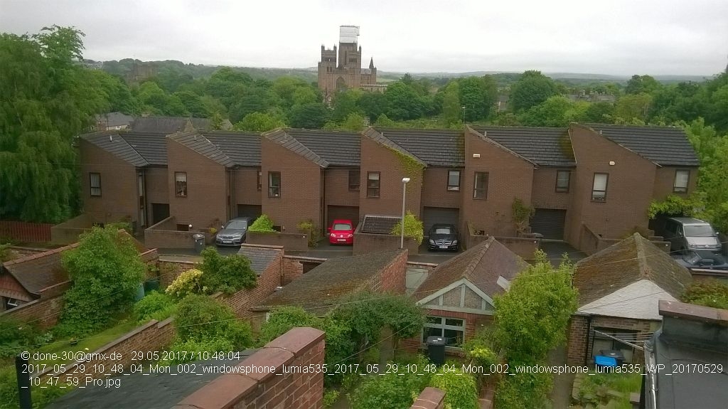 Ausgegeben von der Stov Bayreuth am 2.1.1990 und schon macht er Probleme. Frisch besohlt letztes Jahr, aber nun löst sich mein linker Stiefel endgültig auf. Kleber hab ich noch vom ersten Reparaturversuch am Montag. Ich hätte doch schwarzes Tape mitnehmen sollen oder die Daytonas aus dem Angebot ...... Es regnet grad leicht, nicht viel, aber lästig. Der Wetterbericht nennt das "bewölkt". Da macht es gar keinen Spaß die grandiose Aussicht auf die Kathedrale von Durham zu genießen. Die Stiefel brauchen zwei Tage zum Trocknen, der Kleber wird sowieso nicht viel halten. Noch ne Lage Tape und los. Eine kleine Runde ums Dorf sollte schon sein.