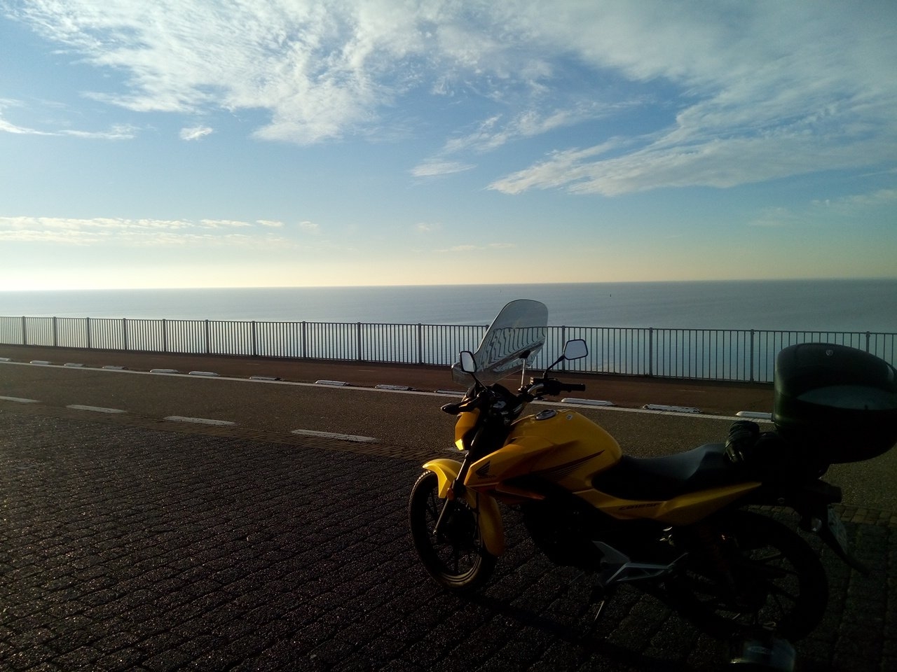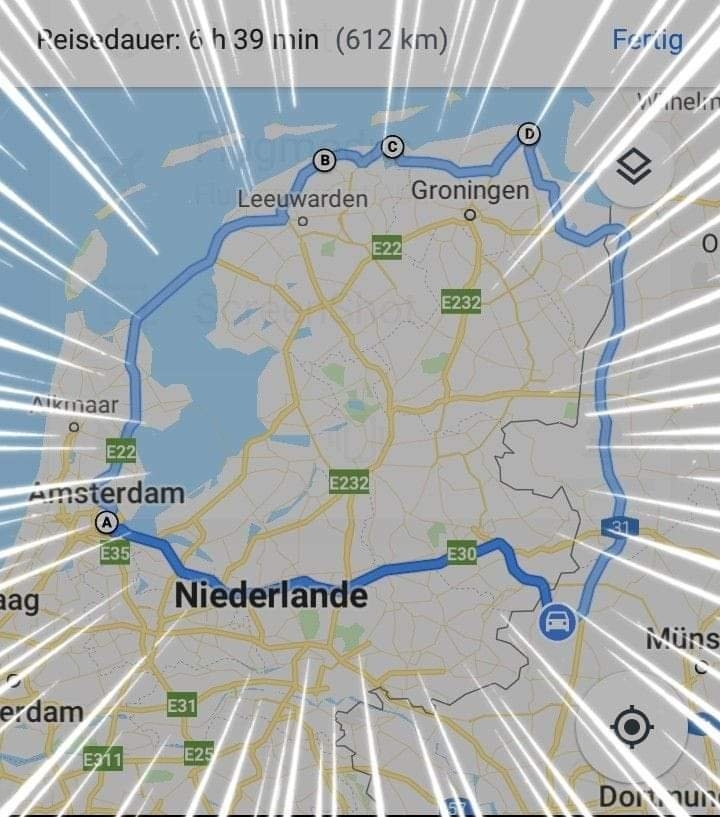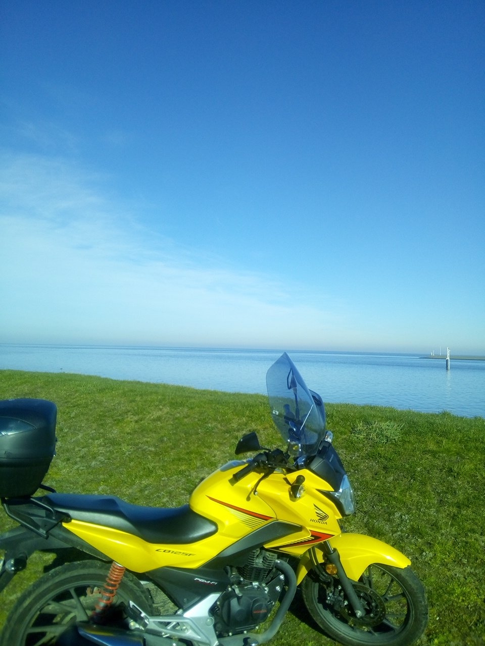 Hab letzten Sonntag meine alljährliche Rundfahrt gemacht. Gegen den Uhrzeigersinn rauf zur See die Küstenregion Richtung Westen über den Sperrdamm nach Amsterdam und zurück. Knapp 10 Stunden insgesamt mit ein paar Schwenkern unterwegs mit 650km. Ein Mal tanken. Fahrzeug cb125f. Herrlich wars mit Kaiserwetter!
