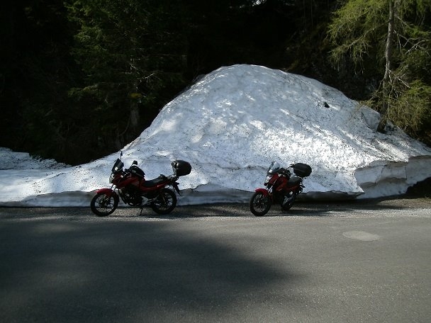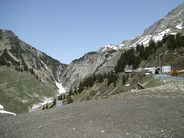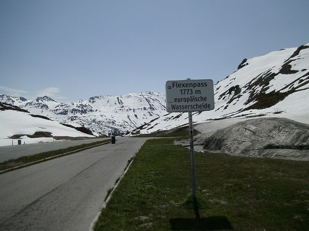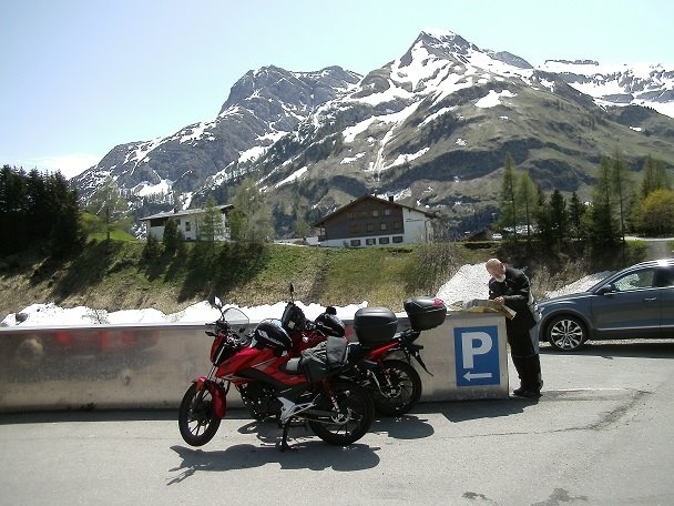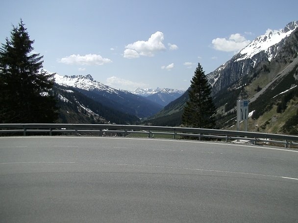Nach dem Frühstück in die Karte geschaut dann ging es noch mal Richtung Hantenjoch soweit bis die Sperrung kahm dabei waren schon einige Kurven und schöne Aussicht fällig. Von dort ging es dann zum Flexenpass 1773 Meter hoch dort lag noch einiges an Schnee .