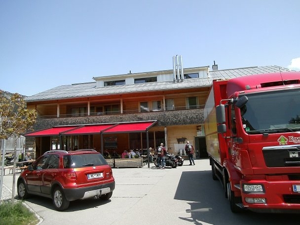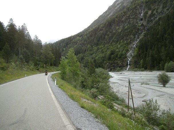 Meine Frühstück Fee hatte schon Kaffee gekocht und den Tisch gedeckt, und Studierte schon die Karte für unsere Heutige Tour .Damit unser Drehwurm länger wird sollte es heute durch das Nahmenlos Tal gehen, das Wetter war Trübe und zeigte uns wie stark hier Temperatur Unterschiede sein können. Tags über in der Sonne waren es bis zu 34 Grad wehrend die Sonne weg war tat ein dicker Pullover gut seinen Dienst und beim Fahren in die kalten Berge waren die Rentner auch über eine lange Unterhose Glücklich. Naja es war Trocken also aufhören zu Jammern und rauf auf die Kieste. Es ging über Bergstraßen Richtung Innsbruck nach Imst dann wurde das Navi eingeschaltet und führte uns wieder über den Flexpass nach Wahrt wo dann erst mal Pause war. Das Wetter wurde nicht Sonniger war aber zum Fahren nicht Schlecht, nun ging es erstmals zurück es musste eingekauft werden und der Tacho zeigte mittlerweile 500 gefahrene km an und es musste mal wieder für 10 E voll Getankt werden