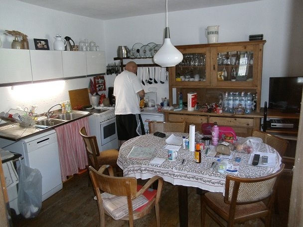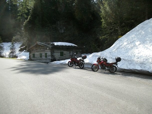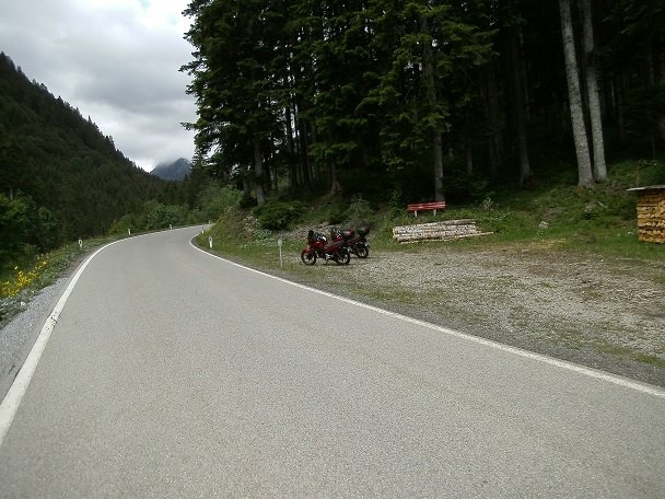 Nach einem guten Frühstück ging es weiter nach Stanzach wo wir gegen 12 Uhr eintrafen. Nach der Inspektion des Hauses wurde das Schlafzimmer an der Garage gewählt von wo der Blick direkt auf unsere Mopeds viel .Nach dem ausladen von unserem Gepäck wurden die Betten bezogen und die Mopeds aus dem Bus geholt. Nach ein bisschen ausruhen schließlich is man ja Rentner sollte eine kleine Runde gefahren werden da zum Abend Regen angesagt war. Wir fuhren zum Hantenjoch das leider wehrend des ganzen Urlaubs gesperrt war. Danach ging es zum Einkaufen schließlich brauchten wir noch was zu futtern und waren dann auch grade zurück als es anfing zu Regnen.