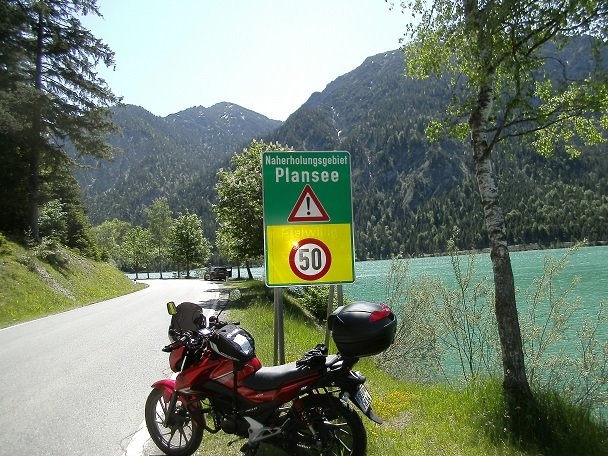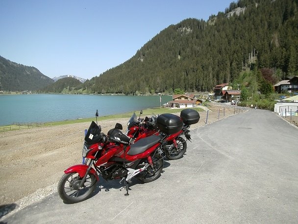 Heute ging es über Reute zum Haldensee dann durch das Tannheimer Tal über die Grenze .Friedhelm hatte die ganze Zeit über Schwierigkeiten mit seinem Handy als wir in der nähe der Grenze kamen fing es an zu Rattern und er fand heraus das sein Handy nur in Deutschland funktioniert .Also ist manchmal gut wenn man ein Handy besitzt so wie ich das kurz nach der Trommel kahm