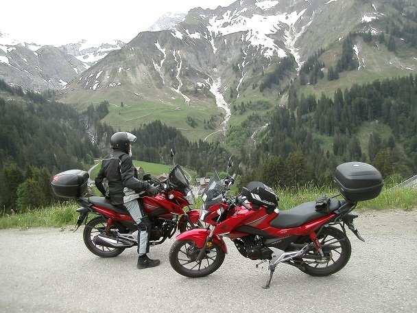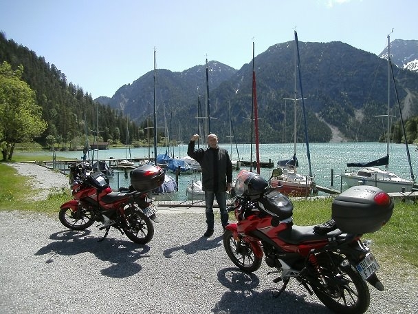 Friedhelm und ich hatten mal wieder Geplant Moped Urlaub zu machen dieses mal sollte es in die Berge gehen. Aber um uns und den Mopeds die Quälerei mit 90 km über die Autobahn zu ersparen hatte Friedhelm einen guten Vorschlag gemacht, wir laden unsere kleinen Hondas in meinen VW Bus und machen am Ziel Ort jeden Tag unsere Ausfahrten. Dazu hatten wir ein Ganzes Haus das wir durch einen Bekannten von Friedhelms Sohn Preisgünstig in Stanzach --Österreich zur Verfügung gestellt bekamen die Möglichkeit dazu. Gesagt getan ich Montierte noch Vorsichtshalber einen neuen verstärkten Kettensatz bevor es los gehen sollte Samstag der Tag vor der Abfahrt wurden unsere Boliden so wie das Gepäck im Bus Verladen . Sonntagmorgen ging es dann los da wir uns keinen Stress machen wollten fuhren wir bis Bad Urach 506 km von Duisburg entfernt und Übernachten dort in einer Jugendherberge. Ich Bitte darum erst nach Fertigstellung des Berichtes Kommentare abzugeben.