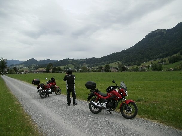 Heute ging es über Tannheim Richtung Sandhofen von dort nach Obersdorf,Dornbirn,Mellau,Rehmen nach Wahrt .Vor lauter Kurven hatten wir schon Kreislauf Störungen es war bis jetzt die schönste Strecke .In Wahrt wurde zu Mittag gegessen und dann ging es nach Stanzach zurück.