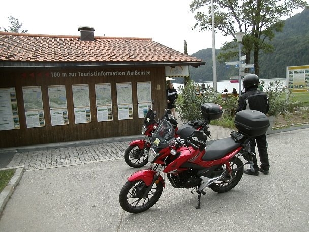 Friedhelm hatte für heute ein Tour zu mehren Seen geplant es ging wieder durch das Tannheimer Tal am Haldensee vorbei Richtung Füssen nach Haslach zum Grüntensee ,von dort zum Weißensee .danach ging es nach Fronten wo dann Mittags Pause war. Nach dem wir es uns in einem Biergarten mit Essen und Trinken gut gehen lassen hatten ging es weiter durch das Tannheimer Tal zurück zum Haldensee wo