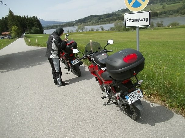 Na ja da muss er nun mal den Vertrag ändern. Nun nach der Telefoniererei ging es im Bogen über Kempen----Füssen zurück bis uns der Hunger plagte nach dem Essen ging es zurück über kleine Dörfer nach Stanzach weil für den Späten Nachmittag schlechtes Wetter angesagt war.