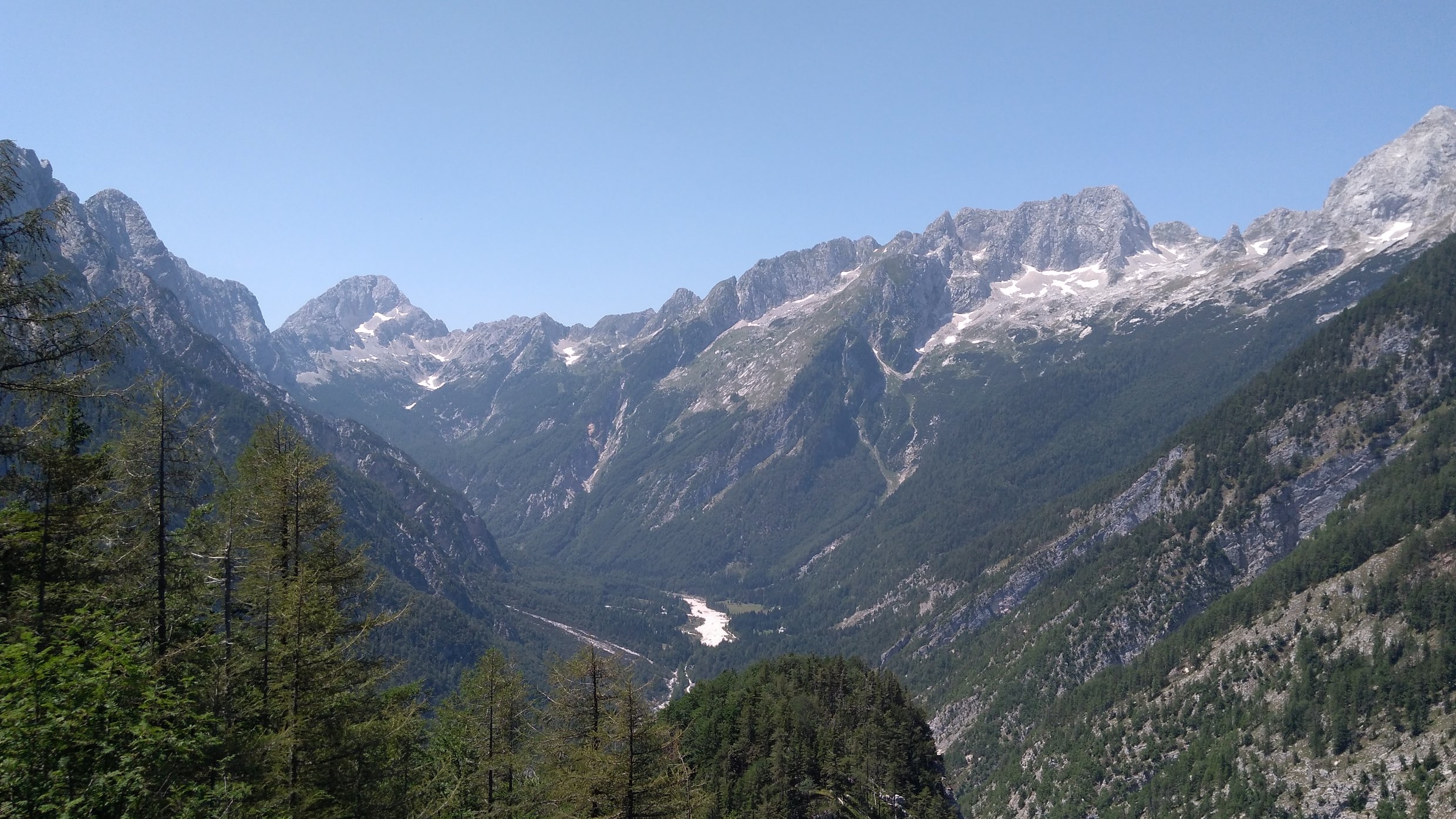 In Slowenien bin ich über den Vrsic-Pass ins Soca-Tal, ein steiler Pass mit neuem Kopfsteinpflaster in den vielen Kehren.