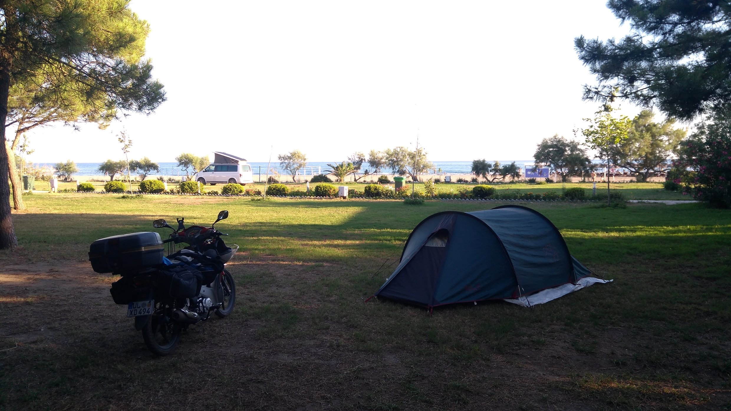 Im Süden wird es ruhiger, südlich von Ulcinj fahre ich zum Safari Beach Camping, es ist der perfekte Platz, gepflegt, großzügig, nicht zu voll, direkt am wunderbaren Strand.