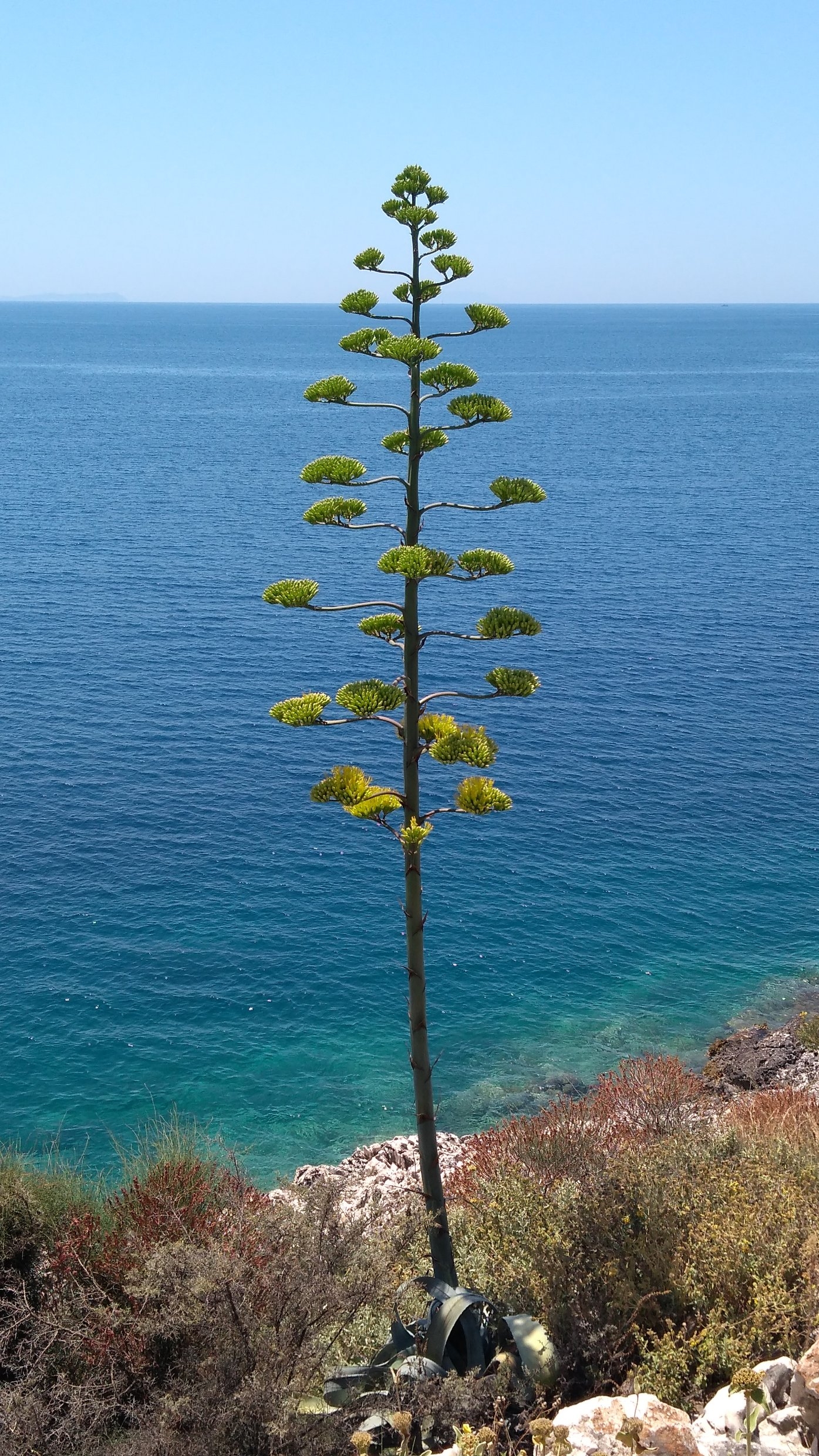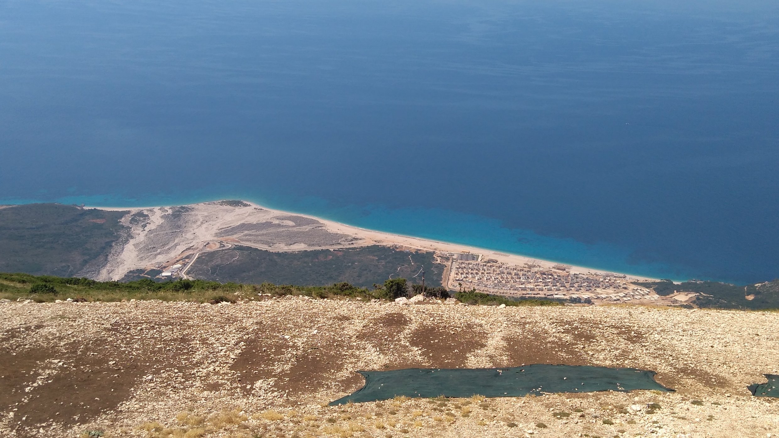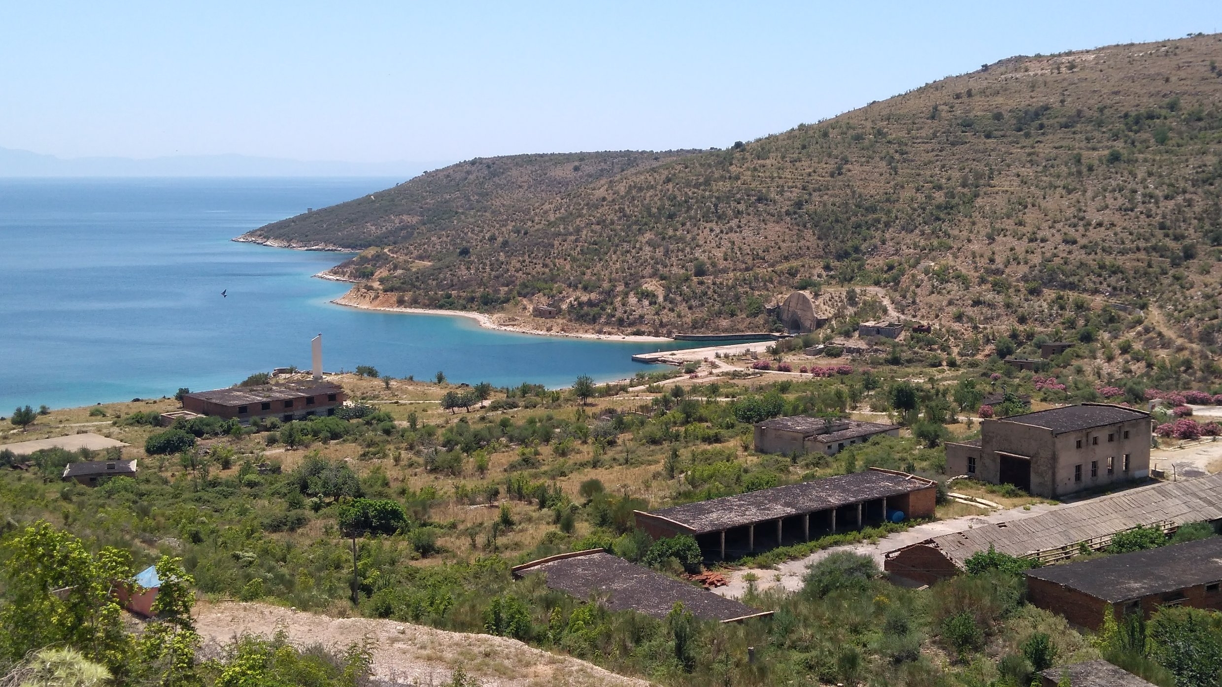 Weiter geht es steil hoch über den Llogara-Pass, von oben hat man eine tolle Aussicht über die Küste. Die weitere Strecke am Meer entlang ist sehr interessant, tolle Badestrände, Ortsdurchfahrten, eine aufgegebene U-Boot-Basis bei Porto Palermo, blühende Agaven. Bei Konispol vor der Grenze fahre ich noch hoch ins verschlafene Zentrum, in dem kleinen Laden wird einwandfreies Englisch gesprochen.