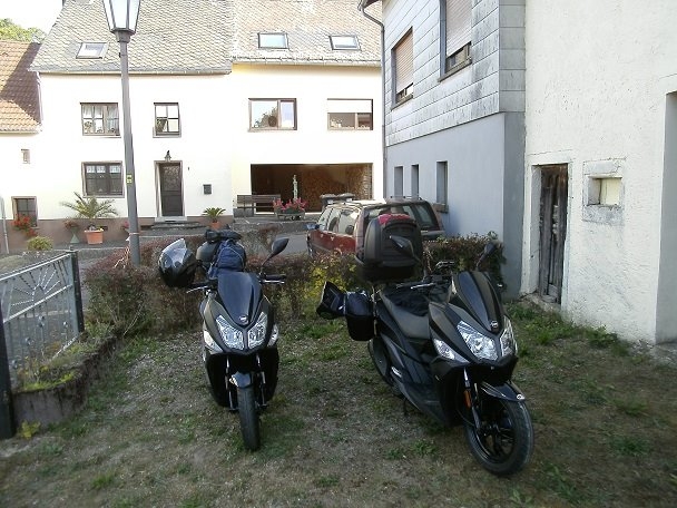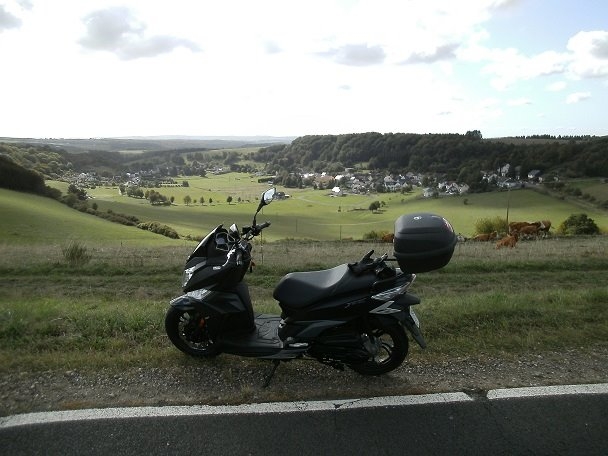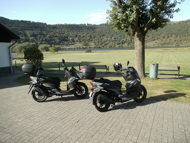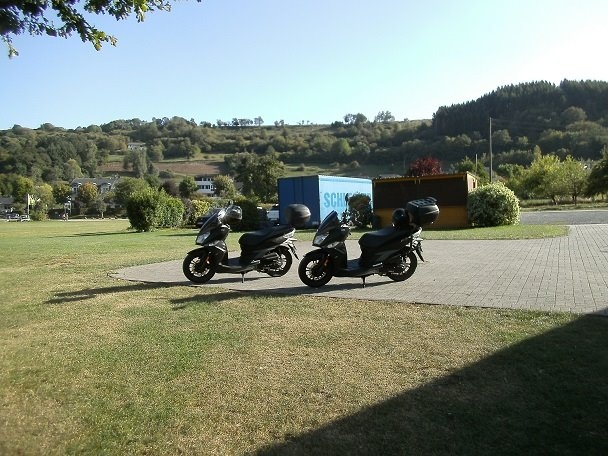 Friedhelm und ich hatten uns im letzten Jahr zwei Sim Jet 14 Roller gekauft und wollten damit eine drei Tages Tour machen, dazu hatte Friedhelm sich einen Kofferträger gebaut und konnte so die Koffer unserer 125 Honda Montieren .Da wir das Glück hatten das Ferien Haus eines Freundes von Friedhelms Sohn in der Eifel zu benutzen stand das Ziel fest und wir brauchten nicht viel mit zu schleppen. Also ging es über Krefeld ,Meerbusch, Bergheim auf die 477 bis in die Eifel .Unterwegs machten wir an unserem Trucker Imbiss halt den wir immer besuchen wenn es zum Nürburgring ging leider hatte es dort einen Besitzer Wechsel gegeben und von der Frikadelle konnte man keine Fleischvergiftung kriegen weil sie wahrscheinlich nur aus Paniermehl bestand. Gegen Mittag Trafen wir dann in Weidenbach ein im Haus machten wir erst mal die Heizung an weil es doch ganz schön Kühl war. Da noch genügend Zeit war bis zum Abend besuchten wir noch einen Vulkan See und genossen die Ruhe. Am Abend gingen wir dann im Pappelhof einem anliegendem Hotel etwas Essen und machten für den anderen Morgen das Frühstück klar. Nach dem Frühstück am nächsten Tag wurden die Tanks voll gemacht im nächsten Dorf und dann konnte es los gehen Richtung Cochem wo wir die Berge mit Mofa Geschwindigkeit hoch kamen. Über Brütig Funkel ging es nach Beilstein und von dort nach Traben Trabach wo dann erst mal Pause war über kleine Straßen ging es dann wieder zurück. Im Pappelhof gab es dann Kaffee und Kuchen das für Friedhelm aber zu viel Zucker beinhaltet hat da er Diabetiker ist ging es im bei unserem Abend Sparziergang nicht so gut und er ging früh zu Bett. Am nächsten morgen ging es ihm dann Gott sei dank besser und wir machten uns für die Heimreise Startklar. Das Navi wollte uns immer auf Schnellstraßen schicken die wir nicht mit den Fünfzigern befahren dürfen also musste uns die gute alte Karte und unser Spürsinn weiter helfen gegen Abend Trafen wir dann wieder in Duisburg ein und hatten Spaß das die kleinen Roller so Prima gelaufen hatten.