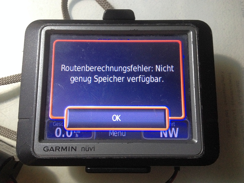 Die Knipserei hat meinen Zeitplan ziemlich übern Haufen geworfen. Ich bin mehr der Genußmensch, der unterwegs auf Landstraßen x-ter Ordnung Eindrücke sammelt und für sich per Foto bewahren will, als dass ich Kilometer um der Kilometer willen auf der Autobahn runterreiße. Deshalb ist es mir auch egal, ob der Tacho nun entgegen dem Navi mit 1005 km erstaunlich viel weniger, also nur 964,7 km aussagt.
