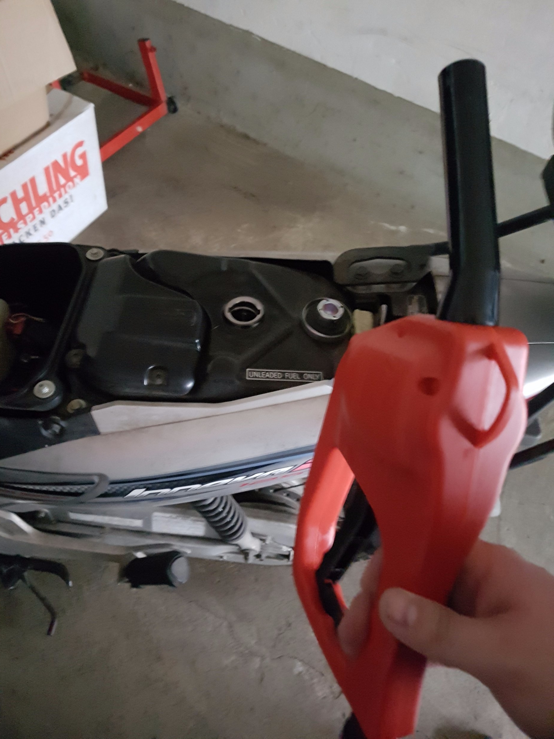 Erst war ich dran es so zu lassen wie es ist. 20l Kanister. Auf 5l umfüllen. Ab ins Moped. Aber es ist so unpraktisch..und komplett ohne geklecker.. schön wärs.