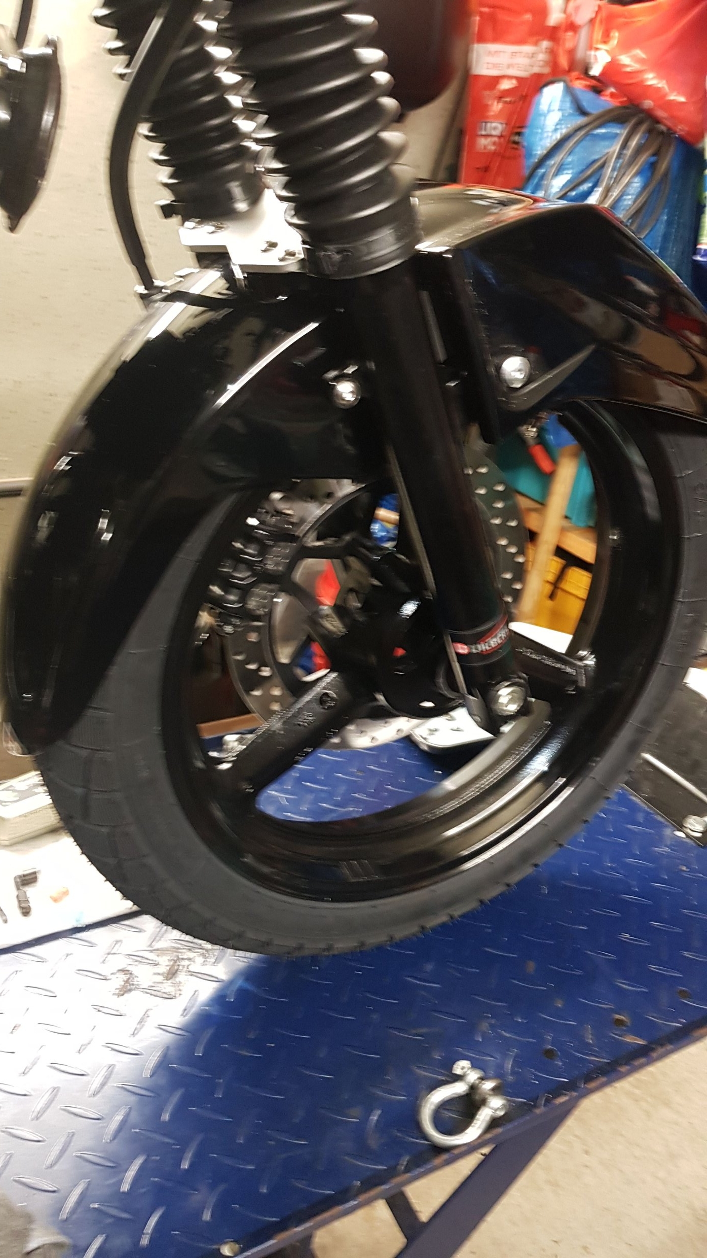 Heute ging es etwas weiter. Räder montiert, Valter Lenkkopfmutter wegen RamMount Dübel,