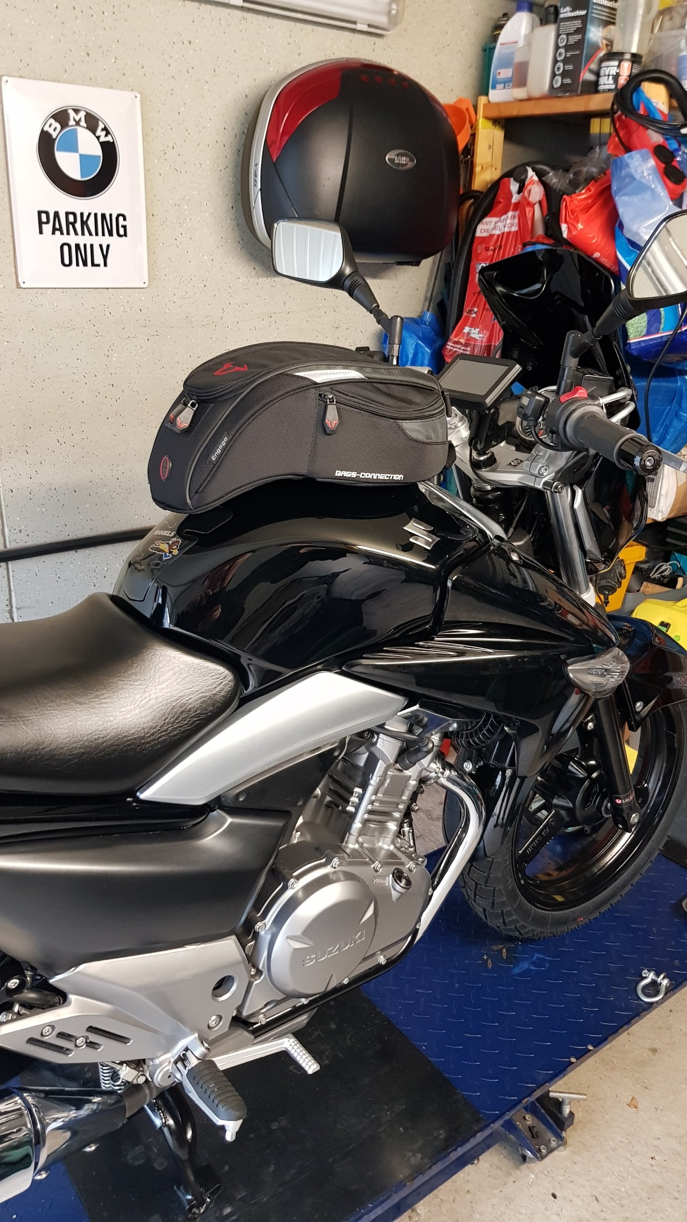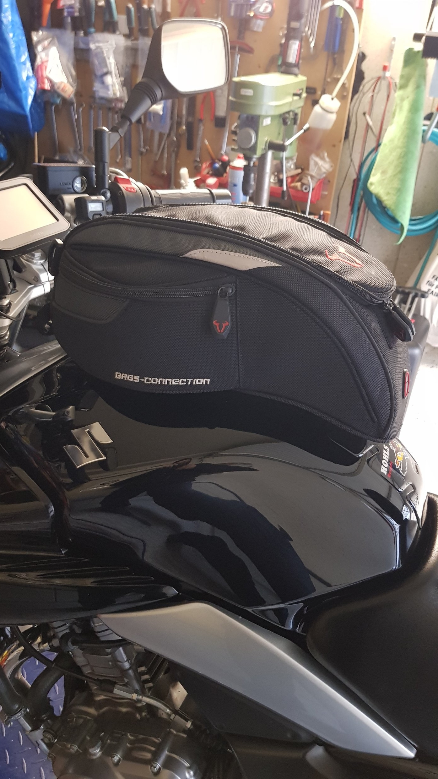 Tankrucksack SW Motech Engage kaufte ich mal zusammen mit einer drunterstehenden BMW GS. Als Beifang lag das Teil nur rum.