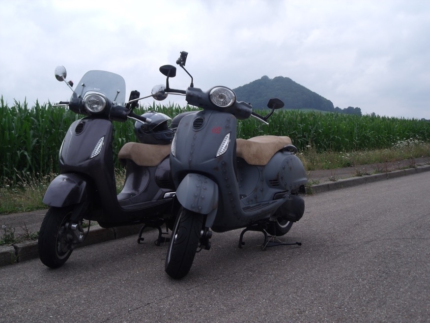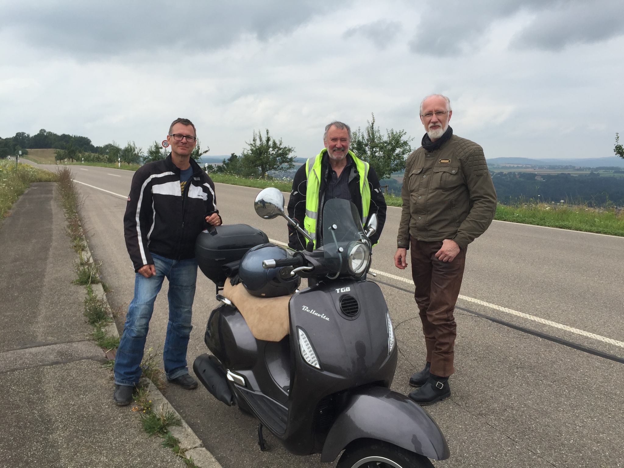 Rübes Ratte Die beiden Bellas vor dem Hohenstaufen Hier noch Bernds SH 300 vorne, dann Karls Honda als stärkste Maschine im Feld Natürlich dürfen die Akteure nicht fehlen von links nach rechts: Bernd, Karl und Rübe Danke nochmal an alles Beteiligten für die gelungene Ausfahrt.