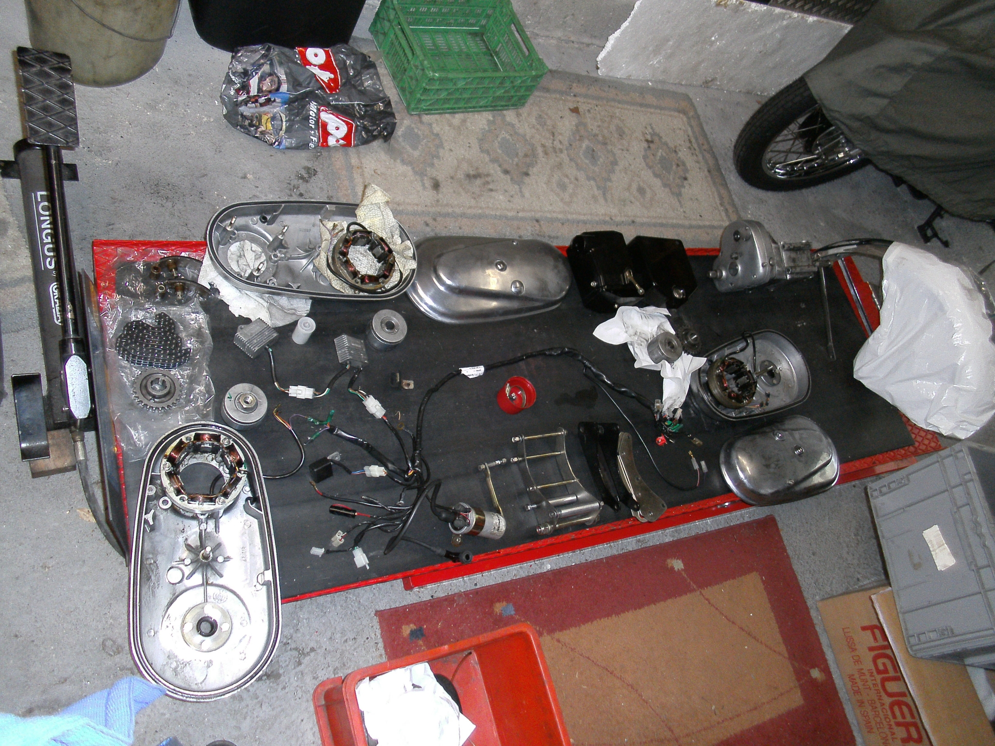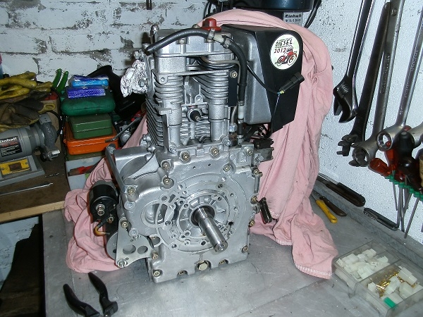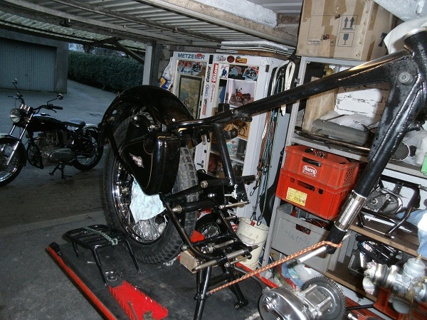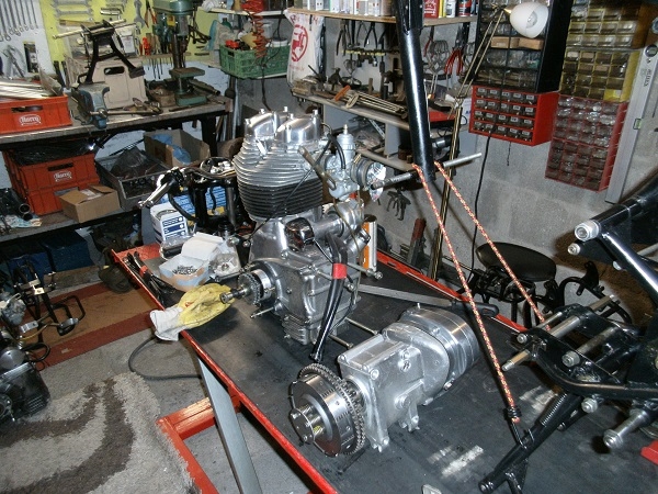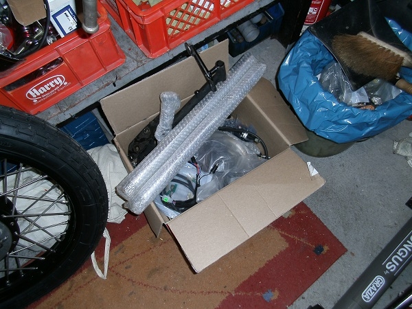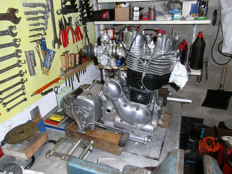 So dann will ich mal zu Teil 2 Übergehen also ein Motor und einige Teile von einer 500 Bullet waren von meinen Diesel Umbauten noch im Regal .Also wurde erst mal alles Rausgekramt um zu sehen was einem noch so fehl um davon wieder ein Motorrad zu bauen. Sachen die mir noch fehlten wurden zum Teil neu oder gebraucht besorgt das ist dann immer wie ein Puzzle das zu einem Ganzen mit jedem Teil wägst .