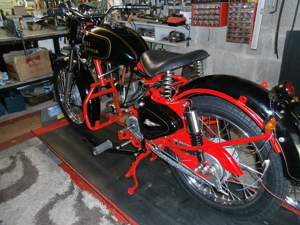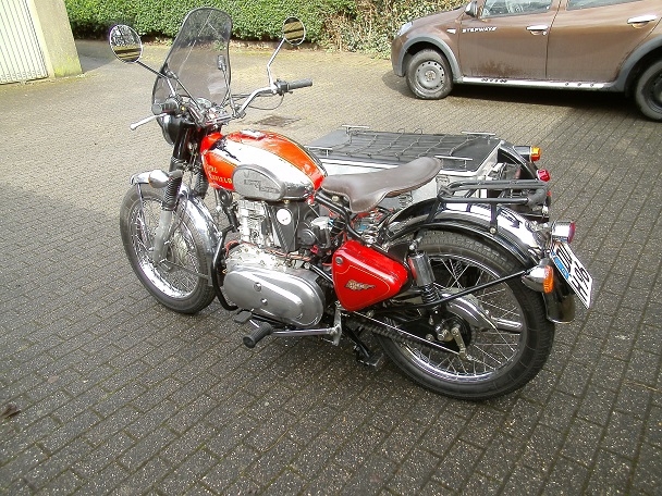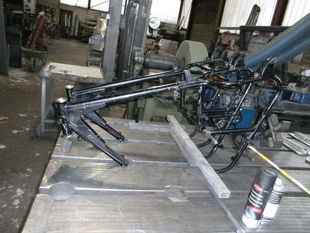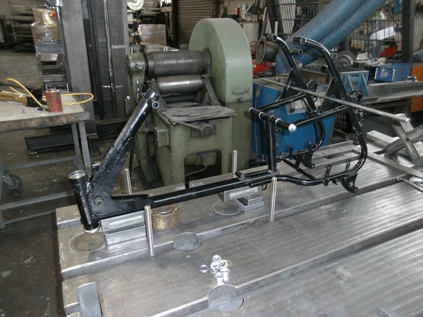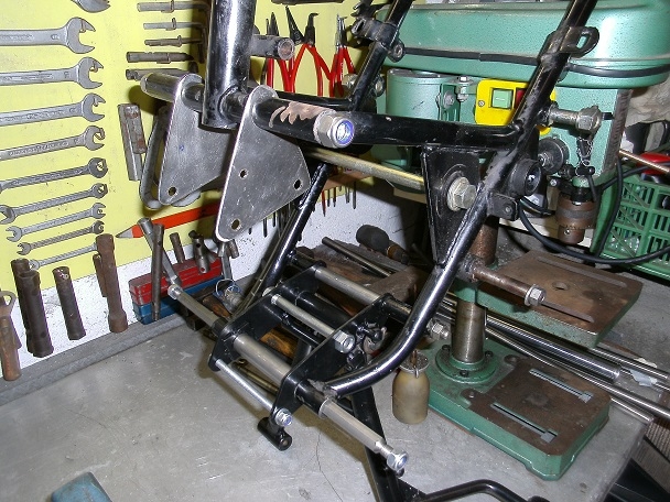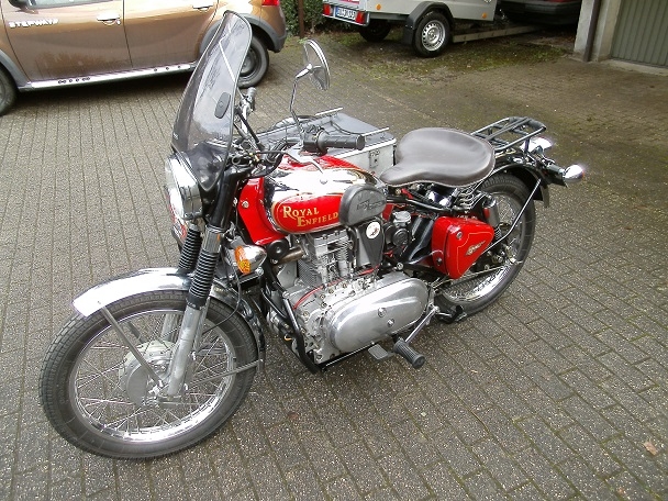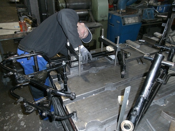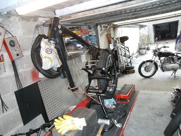 Da es sich in meinem Bericht nicht um Wave oder Innova dreht bringe ich es mal hier rein. Also erst mal von vorne anfangen im letzten Jahr hatten wir ein Treffen in Ransel bei Rüdesheim wo ich mit meinem Dieselgespann dran Teilnahm. Da ich ein Lastengespann habe und all meine Camping Sachen aufgebaut hatte habe ich als alter Hase einen gravierenden Fehler gemacht, und zwar habe ich kein Gewicht mehr in die Alu Kieste von meinem leichten Beiwagen gepackt. So kam es dann als ich an einer Ausfahrt Teilnahm und wir schon wieder auf dem Rückweg waren das der Beiwagen in einer der letzten kurven plötzlich so hoch kam das ich auf der anderen Seite auf der Raste aufsetzte und vor die Leitplanke knallte wobei ich mir einen Schinbeinkopfbruch zu zog. Mein Gespann hatte einen verbogenen Rahmen ein paar krumme Gabelrohre und ein verbogenes Schutzblech .Nun war erst mal Pause es folgten OP und nach 8Wochen 6Wochen Reha und wieder Laufen lernen. Aber da wir uns ja nicht unter kriegen lassen ging es mit der Schrauberrei direkt los als ich mich mit Krücken zur Garage begeben konnte. So wurde das Gespann zerlegt als ich sah das der Rahmen krumm war ging ich erst mal auf Suche nach einem gebrauchten Enfield Bullet Rahmen den ich dann auch durch ein Mitglied des Enfield Forums bekam. Da ich aber beim neu Aufbau die ganze Geschichte wieder hätte Tüffen müssen bot Floh Nytz mir einen Rahmen von einer runter gerittenen Hatz Diesel an so kam es das ich ihn auch noch kaufte. Als ich Horst von Beruf Schlosser Meister und erfahrener Motorrad Sportler auf unserem Treffen am Landschaftspark von meinem Rahmen erzählte ,bot er mir an ihn zu Richten. So kam es dann das aus einem defektem Motorrad 3 Motorräder entstanden.