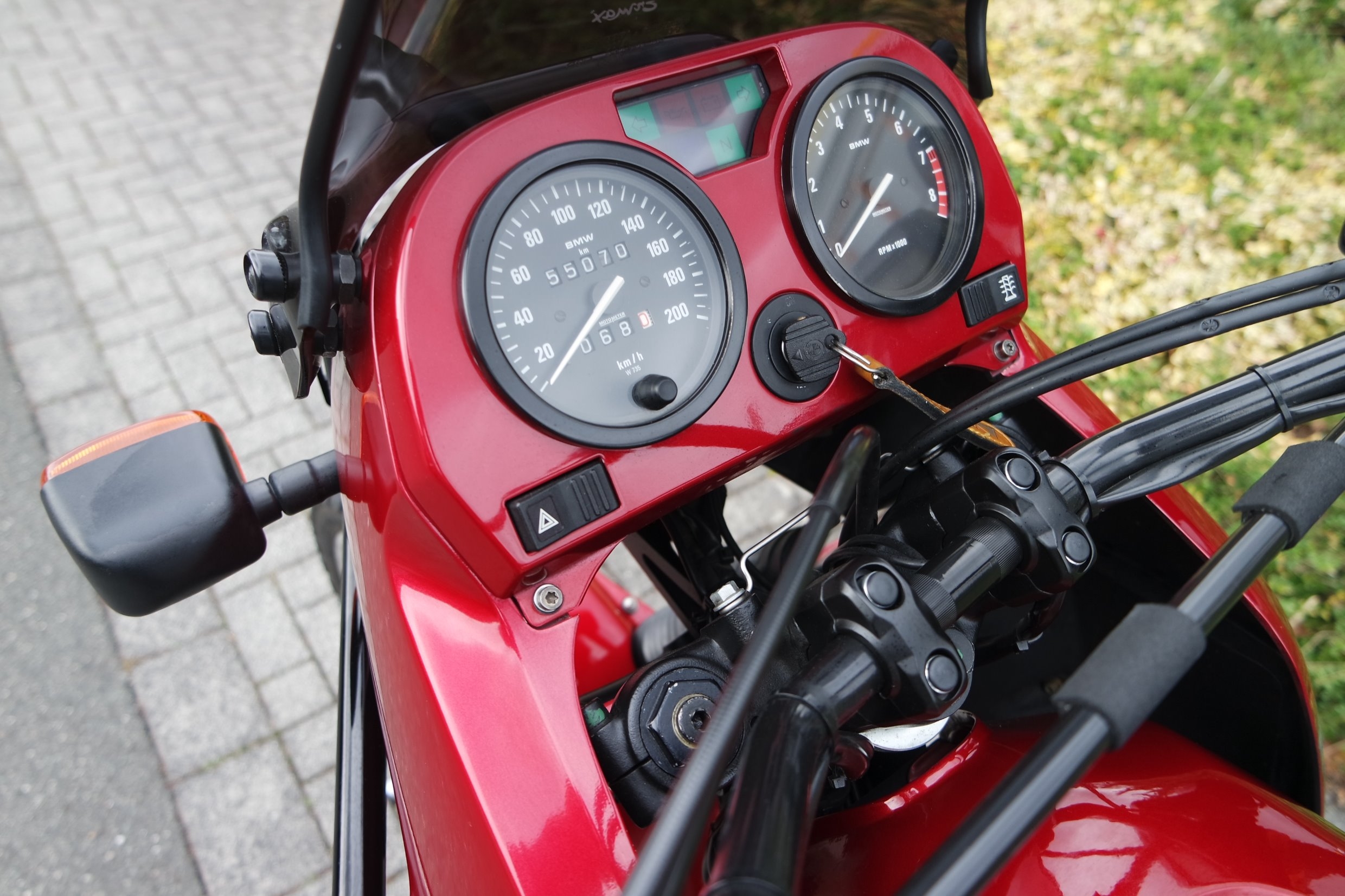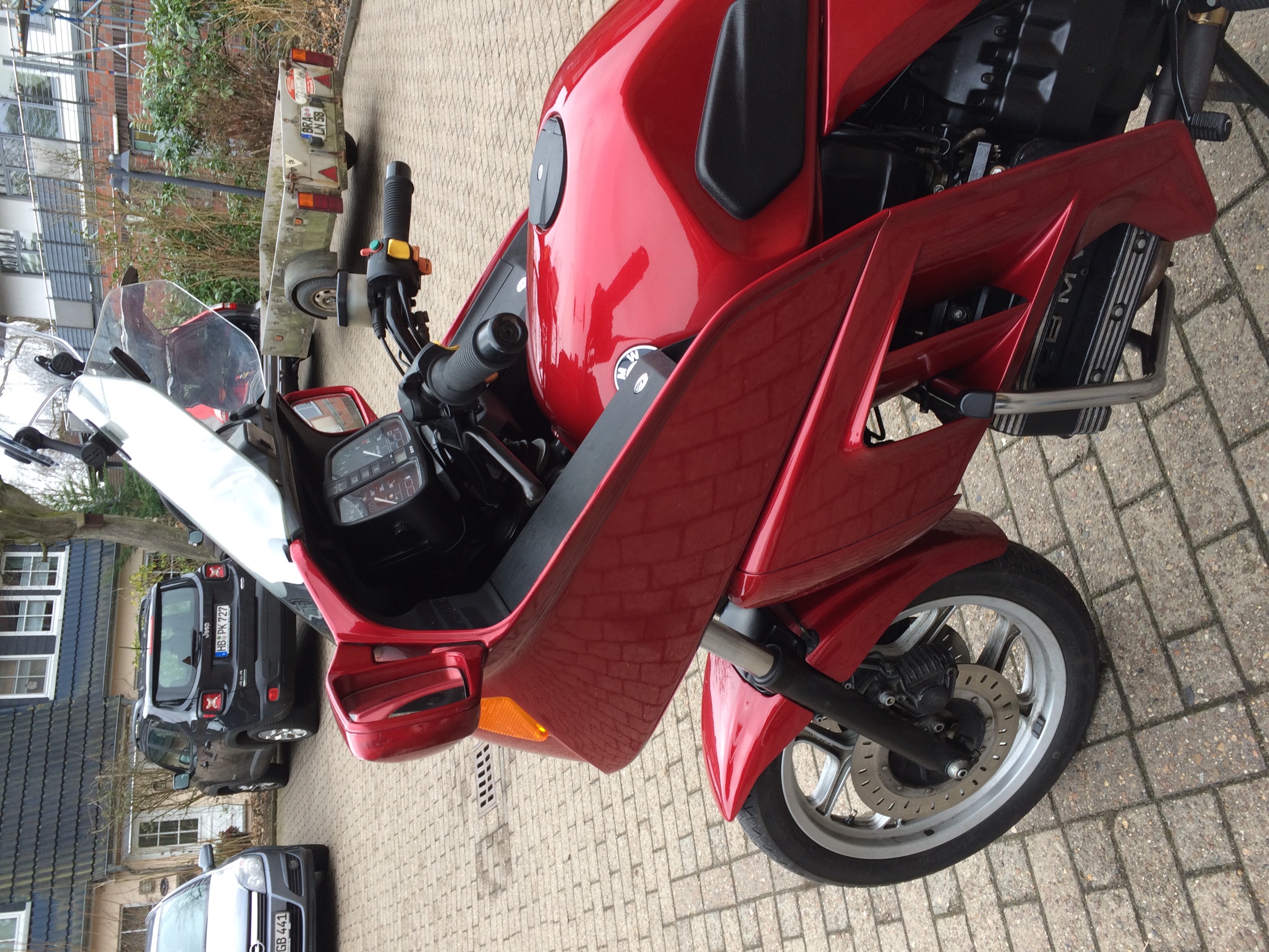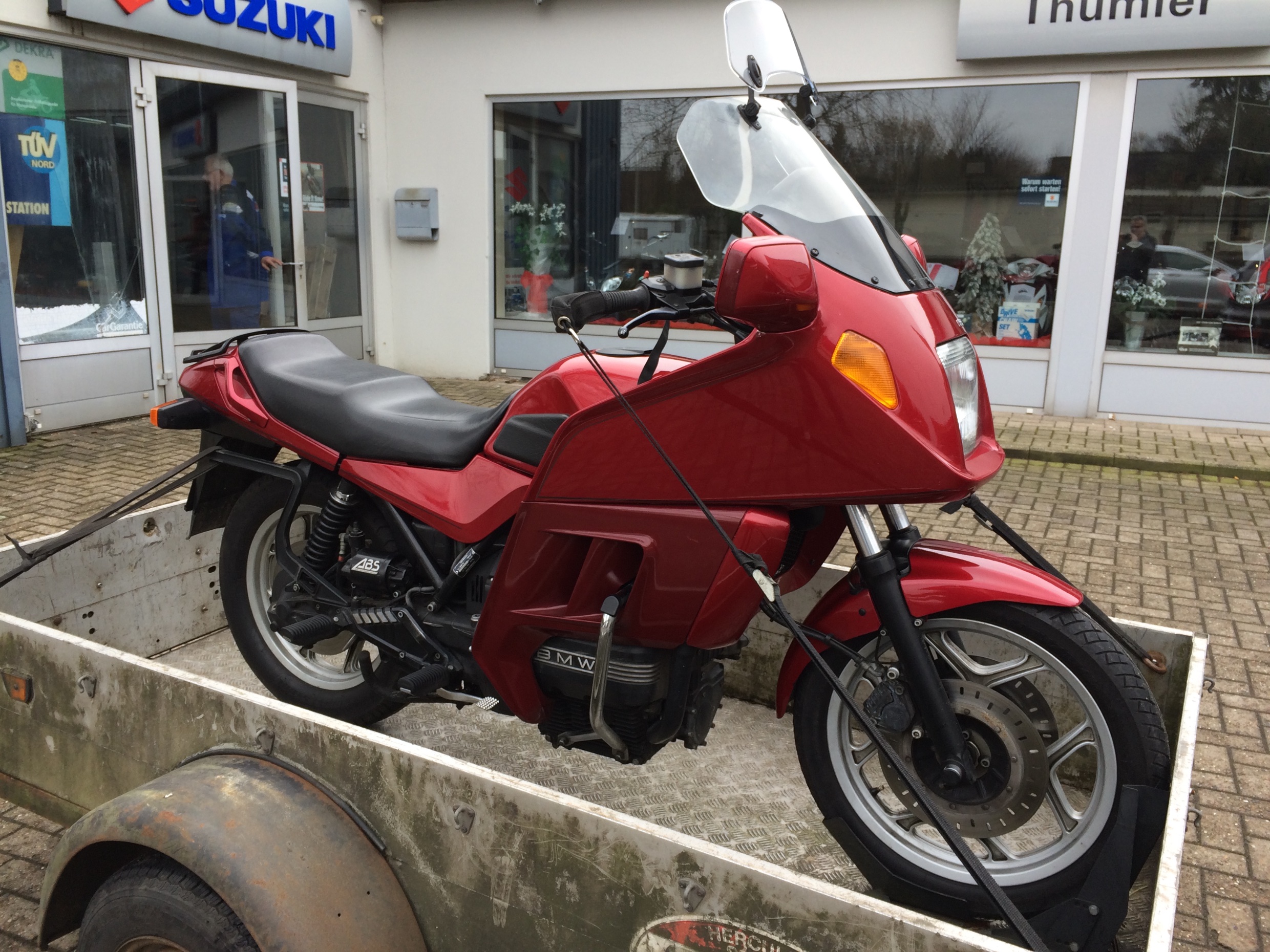 da liegste abends gemütlich auf dem Sofa, schaust mal im Tab auf diverse Seiten, und plötzlich ist der Abend gelaufen. Mein Suzuki Händler des Vertrauens inserierte eine 95er BMW K 75 RT in Rotmetallic. Also nur Mail, nach 22:ooh anrufen, nee, das wollte ich nicht... also am nächsten Morgen hin, den Suzuki Werkstattkalender für 2017 abholen... RT stand in der Halle, Petra schaute nicht mal skeptisch, Probesitzen, genial. So ein altes Schätzchen im angemessen Zustand für kleines Geld, da konnte ich nicht nein sagen. Jan-Dirk hatte die RT genau 27 Minuten inseriert.