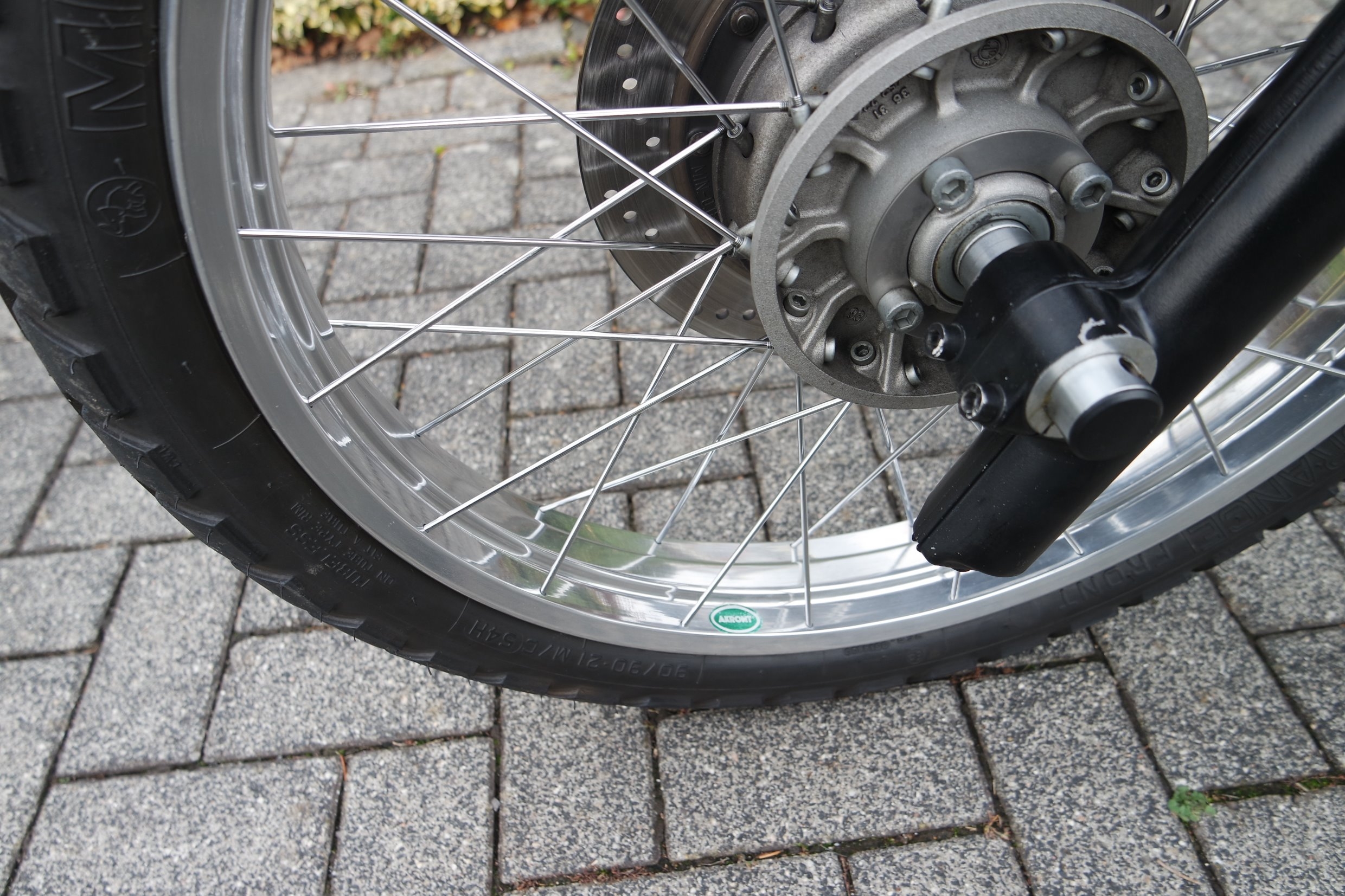 Auststattung: Heizgriffe, Zusatzinstrumente, ABS, Sturzbügel, Seitenkoffer, Bridgestone BT45, MRA Scheibenaufsatz