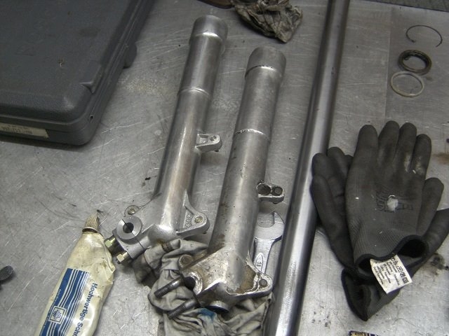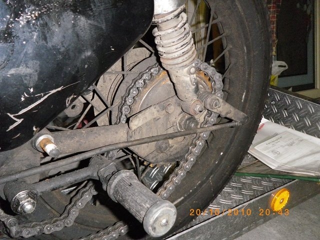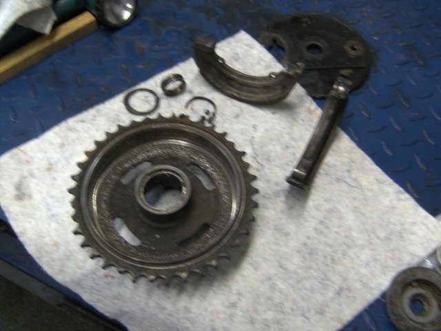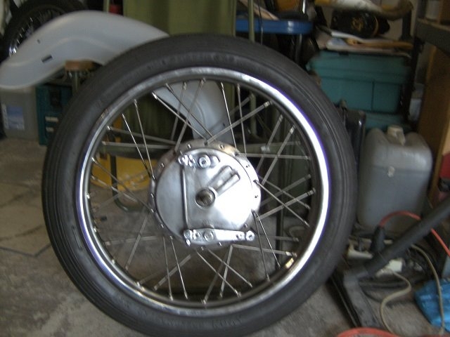 Als nächstes standen für mich Gabel und Räder auf dem Programm einer der unteren Gabelrohre musste getauscht werden weil es gerissen war sowie Gabel Wedis und öl. Die Räder wurden gesäubert gebrochene Speichen und hinter Reifen ersetzt. Da das Kettenrad eins mit der Bremstrommel ist wurde es komplett mit neuen Bremsbelägen und Lager zusammen gebaut.