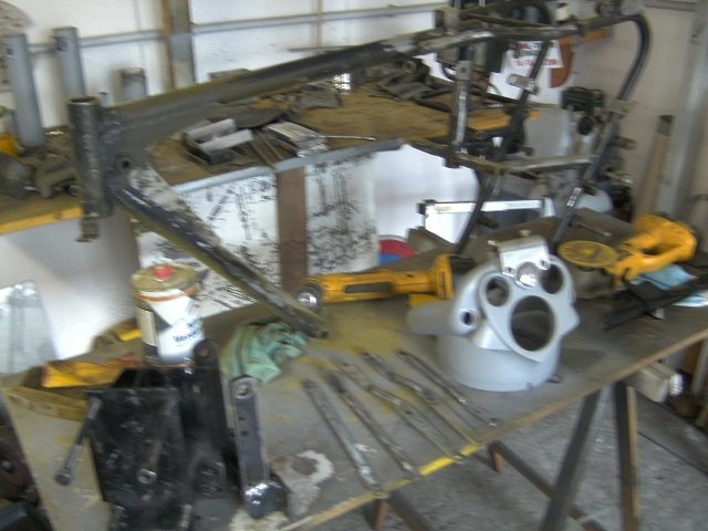 Nach dem Räder und Gabel fertig waren lies ich die Motor halte Platten Schweißen. Die Schwinge lies sich nur noch mit der Flex vom Rahmen Trennen musste also auch neu.Die Elektrik wurde auch komplett neu gemacht.