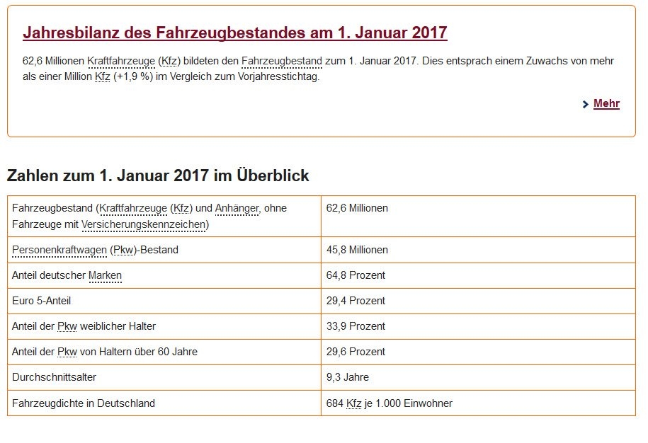 Wobei mir der Wert irgendwie zu gering erscheint, wenn man die Zahlen der Neuzulassungen der letzten Jahre aufaddiert.