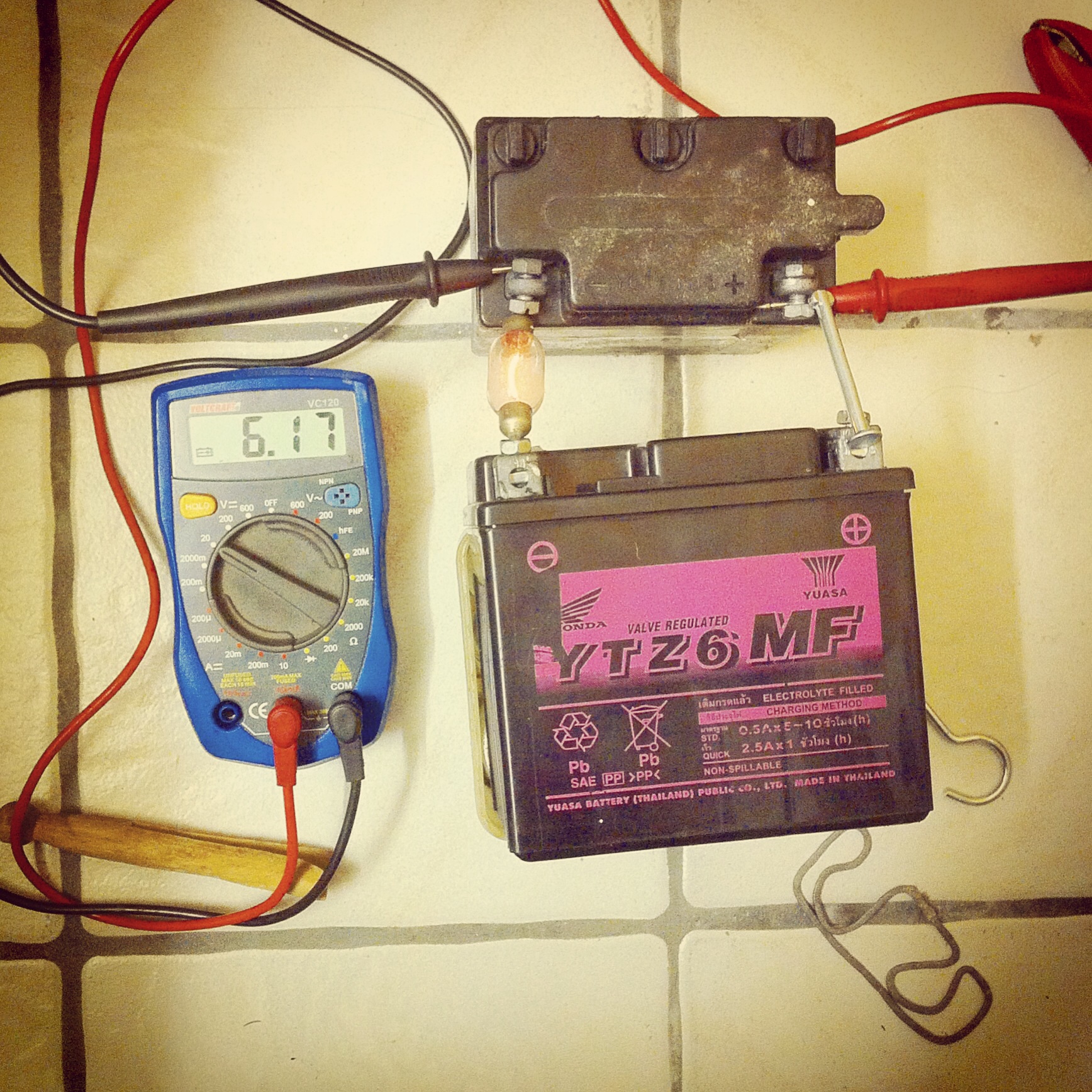 So nix is abgeraucht und der e starter hat den Motor zum laufen gebracht. Gucken wa mal ob's jetzt so gut is sonst kommt nen neuer stromspeicher.