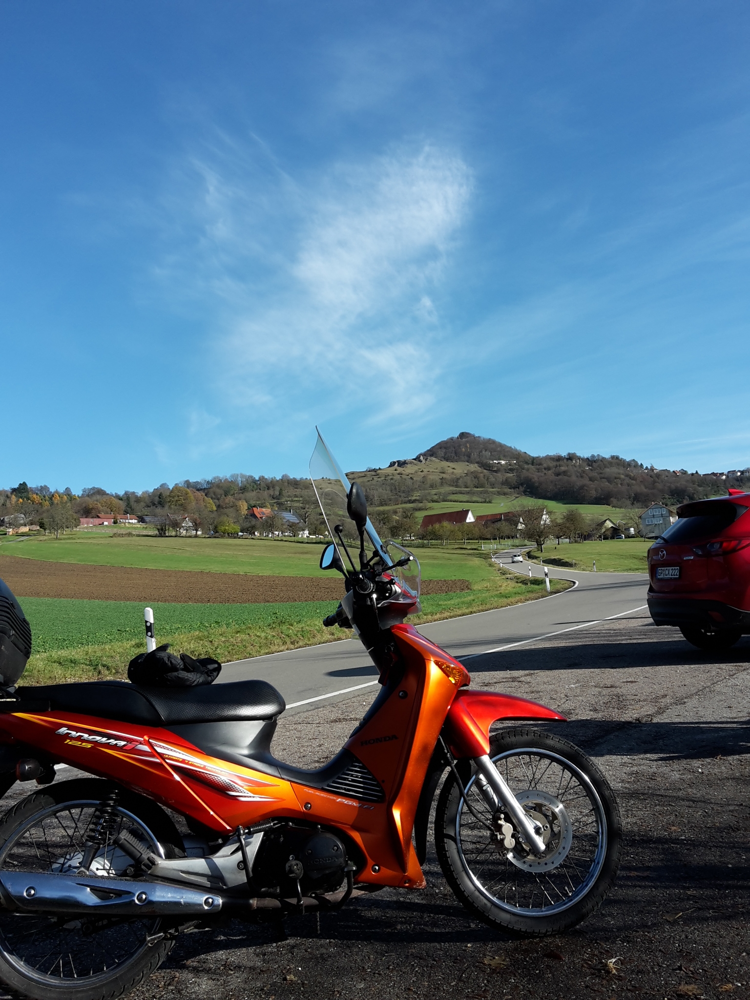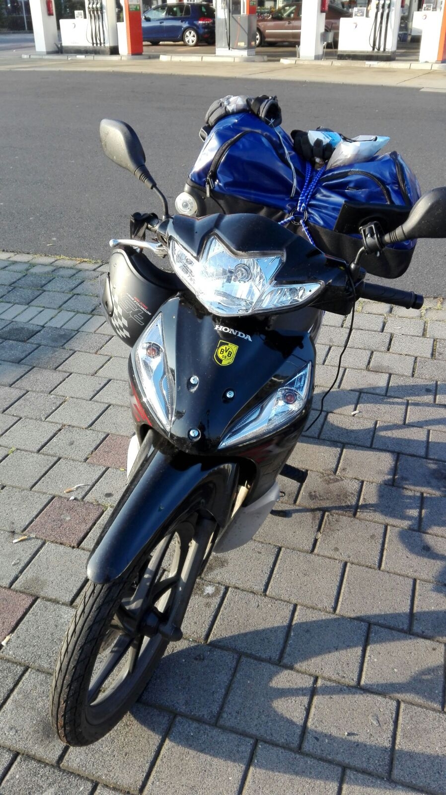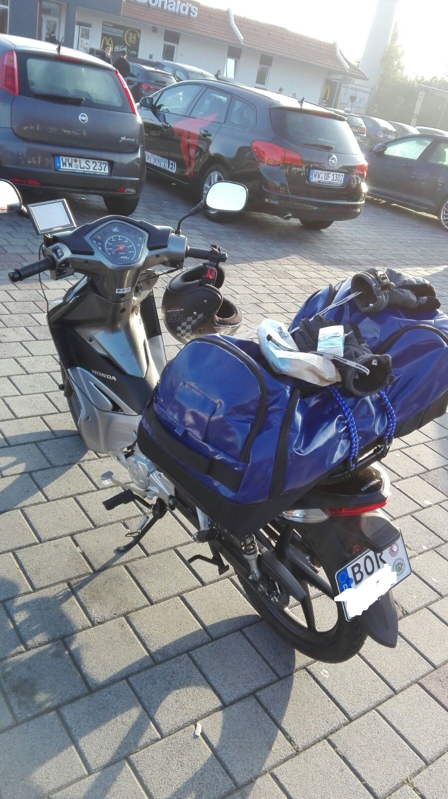 Gut dass Du mich dran erinnerst: ich muss mir demnächst Heizgriffe montieren. Der Sommer scheint jetzt vorbei zu sein.Es war eine herrlich Fahrt in den Sonnenaufgang. Morgens noch recht frisch, aber mit Opa-Decke und Heatpax in den Handschuhen sehr angenehm.
