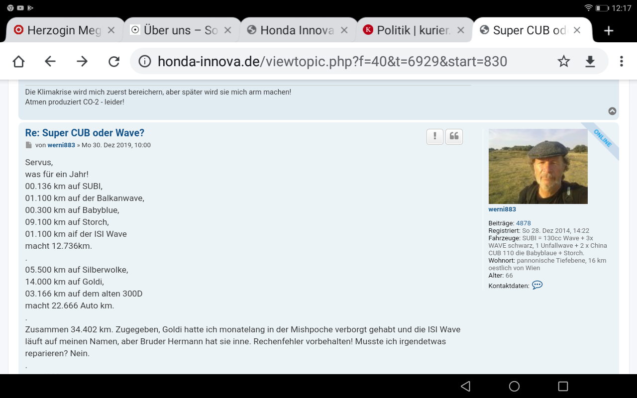 heute werde ich das Standgas nicht testen, weil ich 2 x 5,6 km mit dem Kick--Scooter fahren will.