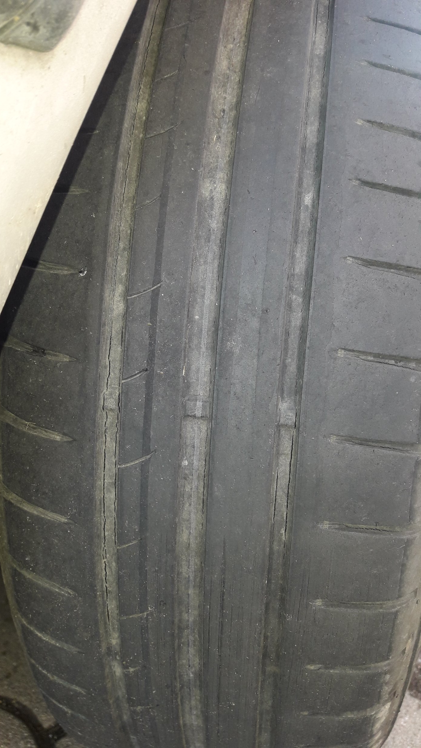 Also machte ich mir die Mühe, das Profil der Sommerreifen, gefertigt in 0215, zu messen. Da sah ich "Schnitte und Risse, die bis zur Karkasse reichen!" .
