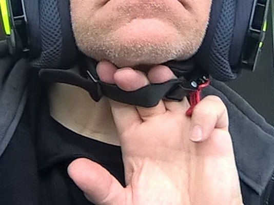 Kinnriemen darf nicht ganz eng sein, sonst drückt er auf den Kehlkopf. Das ist bei allen Helmen so.