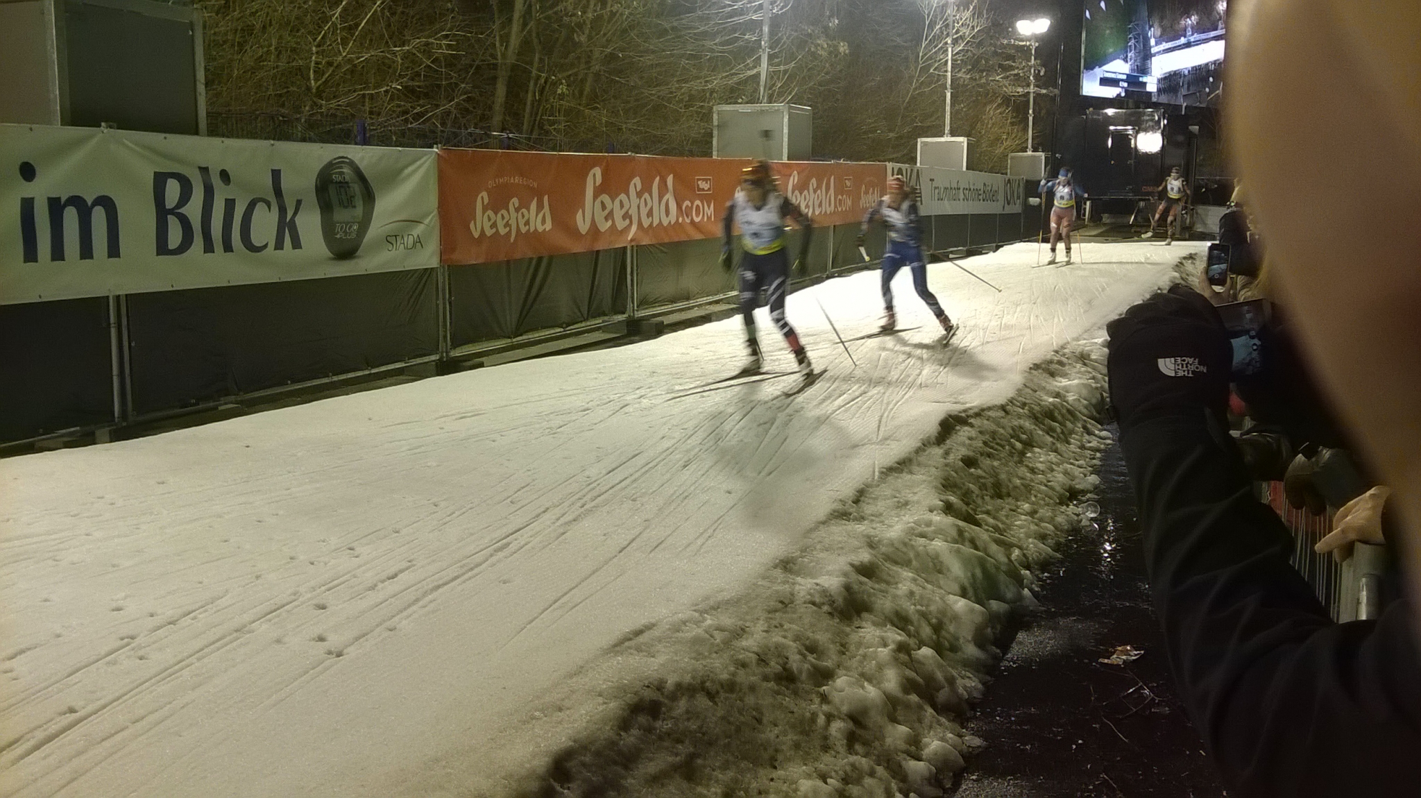 Beim Abstieg auf gleicher Strecke das erste Bild. Nun weiter nach St.Moritz. Viele Skifahrer (fehlt nur Schnee, auch hier Schneekanonen im Einsatz) und noch mehr Schlittschuhläufer. Kalt genug für eine dicke Eisfläche ist es.