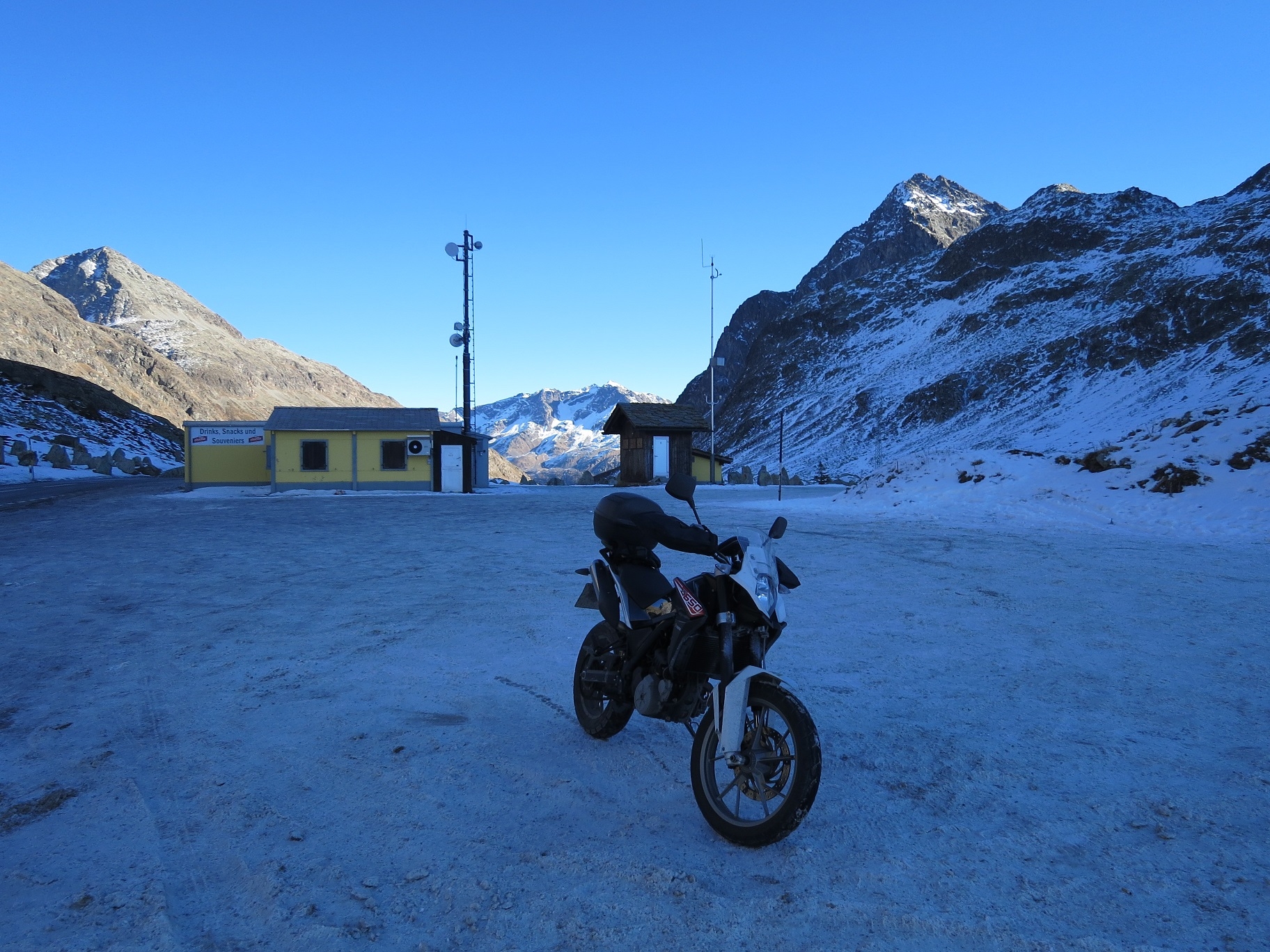 Der Schweizer Grenzer stellt erst seine Standardfrage nach Zigaretten und Alkohol und bringt dann seine Verwunderung zum Ausdruck. Auf die Frage wohin, antworte ich ausweichend mit St.Moritz.