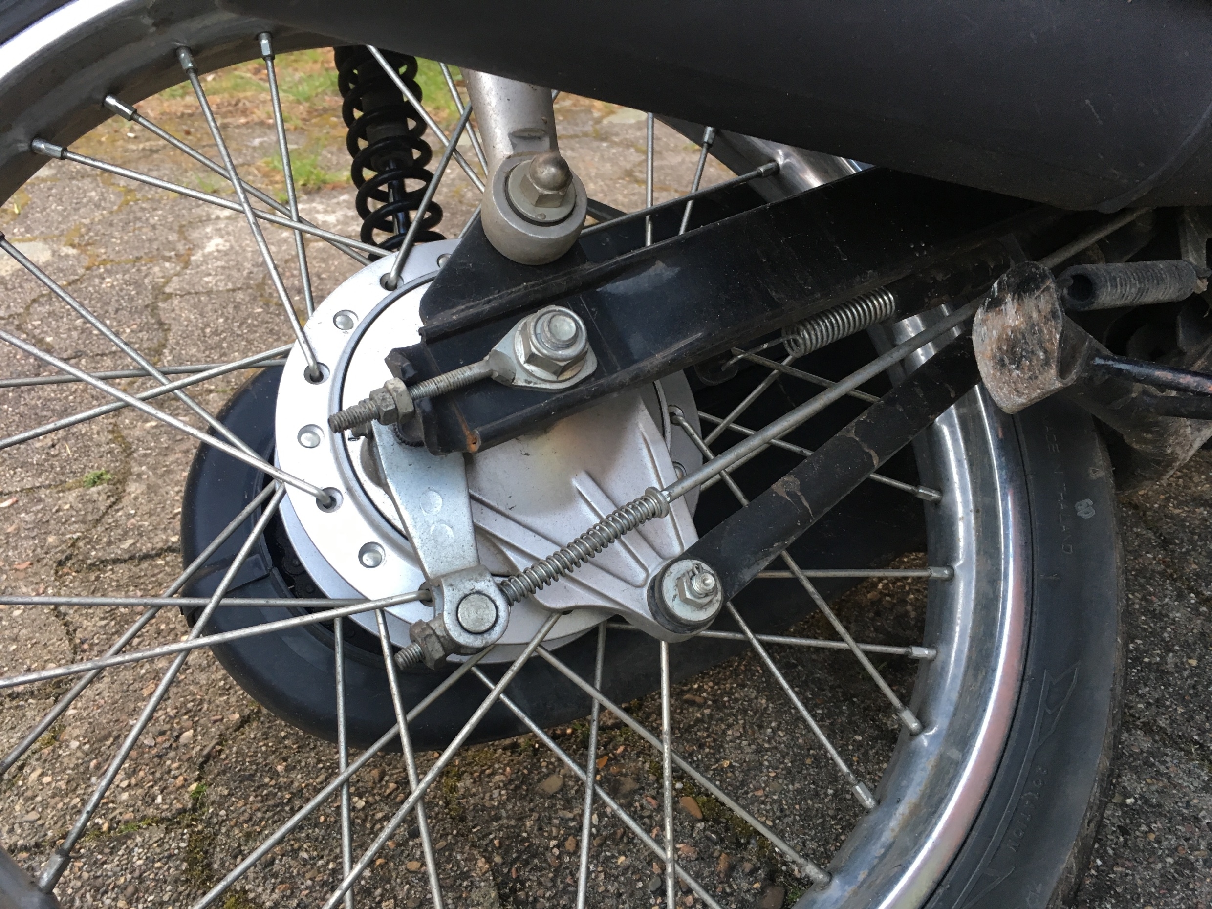 Achja, links wird gekickt. KTM-mäßig, und auf einem monumentalen Hebel wie an einer XL500