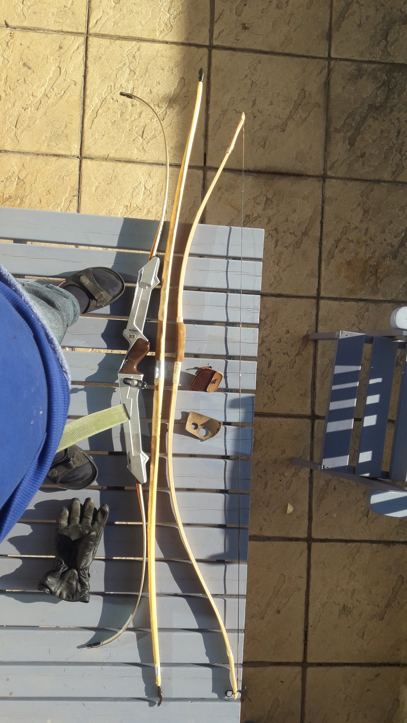 Am Bild noch 2 Fingertab. 1 x selfmade, 1 x re. für Blankbogen, barebow, wo man ohne Visier mit 3 Finger unterhalb des Pfeiles zieht. Ich liebe das.