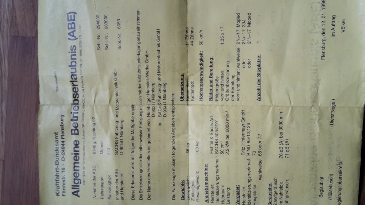 z.B. die Traglast, oder wie in der Betriebserlaubnis steht: Moped als Bezeichnung?