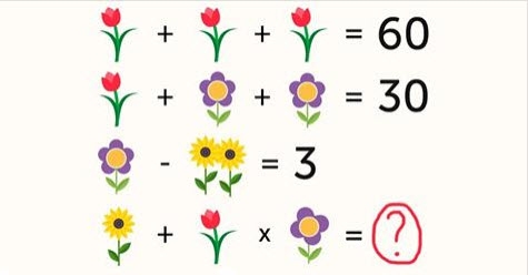 Tulpe rot ist 20, Blume lila ist 15, Sonnenblume ist 6 oder -6