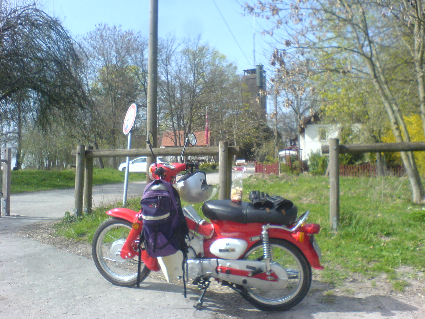 Da es aber nicht allzu lange dauern soll, hier ein kleine Hilfestellung: die Tour befand sich im Rahmen einer Gepäckträger- und Windschildprobefahrt. Auf dem Berg stand mal eine Burg. Das Adelsgeschlecht existiert heute nicht mehr.