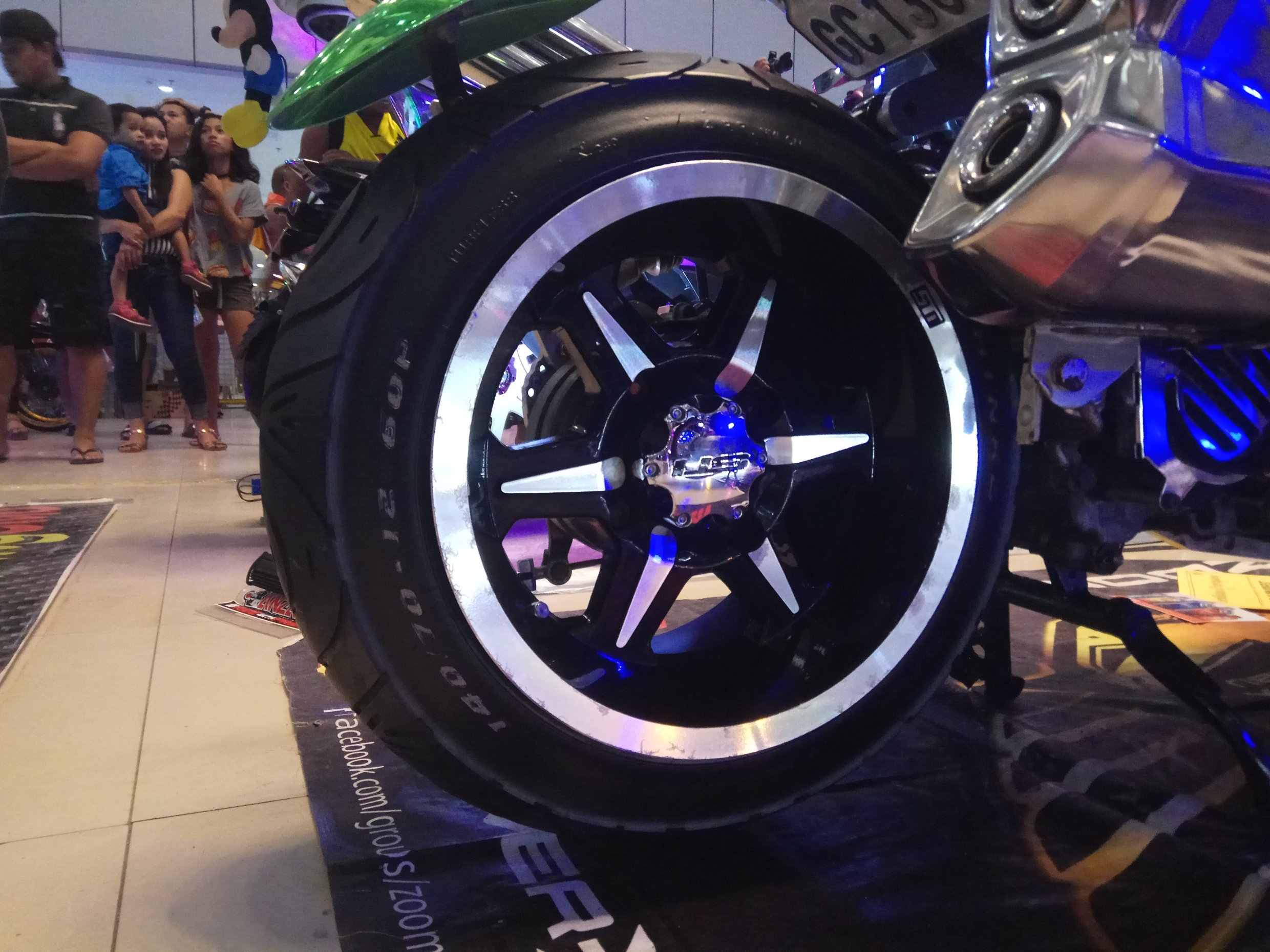 Und das ist ein Hinterreifen von einem Scooter. Die Basis waren, so wie ich es gesehen haben, immer Scooter bis 125ccm Nur einen 155er habe ich gesehen, aber der war nicht so krass, ja fast schon etwas langweilig.