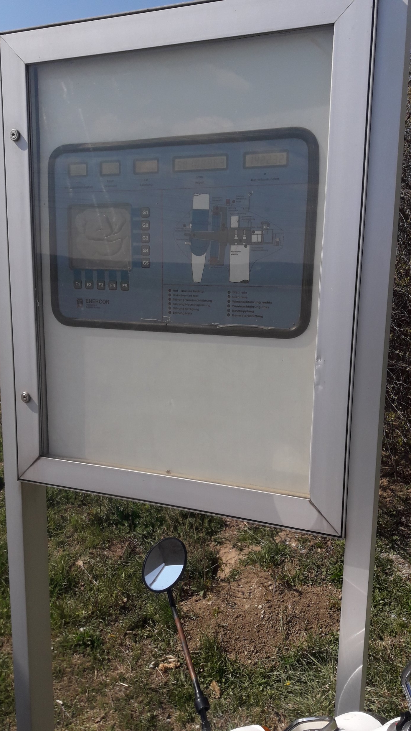 Ich fuhr mit Storch hinaus in Wald und Flur bis ich jene eine Enercon E-70/2.000 fand, die seit ~ 13 Jahren als Schaukraftwerk mit freistehender Schalttafel ausgerüstet ist.